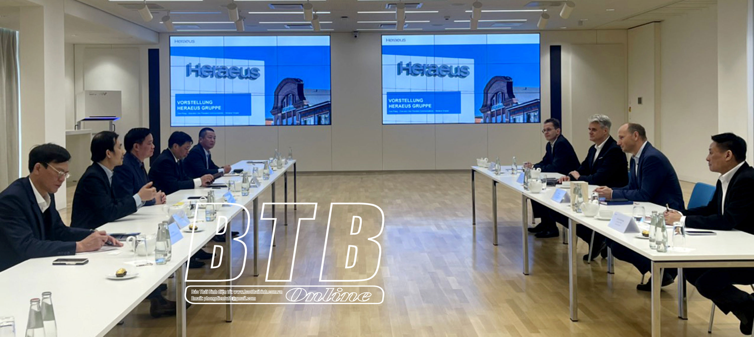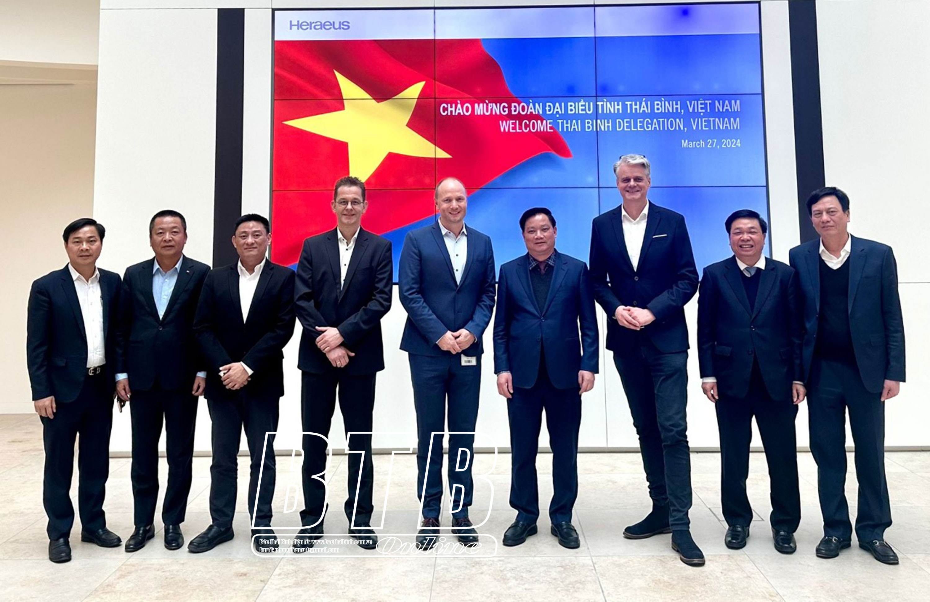 Heraeus là tập đoàn công nghệ hoạt động trong các lĩnh vực công nghiệp công nghệ y tế, luyện kim và sản xuất linh kiện điện tử. Heraeus có lịch sử phát triển từ năm 1851 và là một trong những doanh nghiệp tư nhân lớn nhất của Đức. Hiện nay, hoạt động kinh doanh của Heraeus có mặt ở khoảng 40 quốc gia trên toàn cầu, doanh thu của Tập đoàn năm 2022 đạt gần 30 tỷ Euro. Tại Việt Nam, đầu năm nay Heraeus có những hoạt động xúc tiến đầu tư, nghiên cứu, tìm kiếm cơ hội đầu tư ở một số địa phương, trong đó có tỉnh Thái Bình.