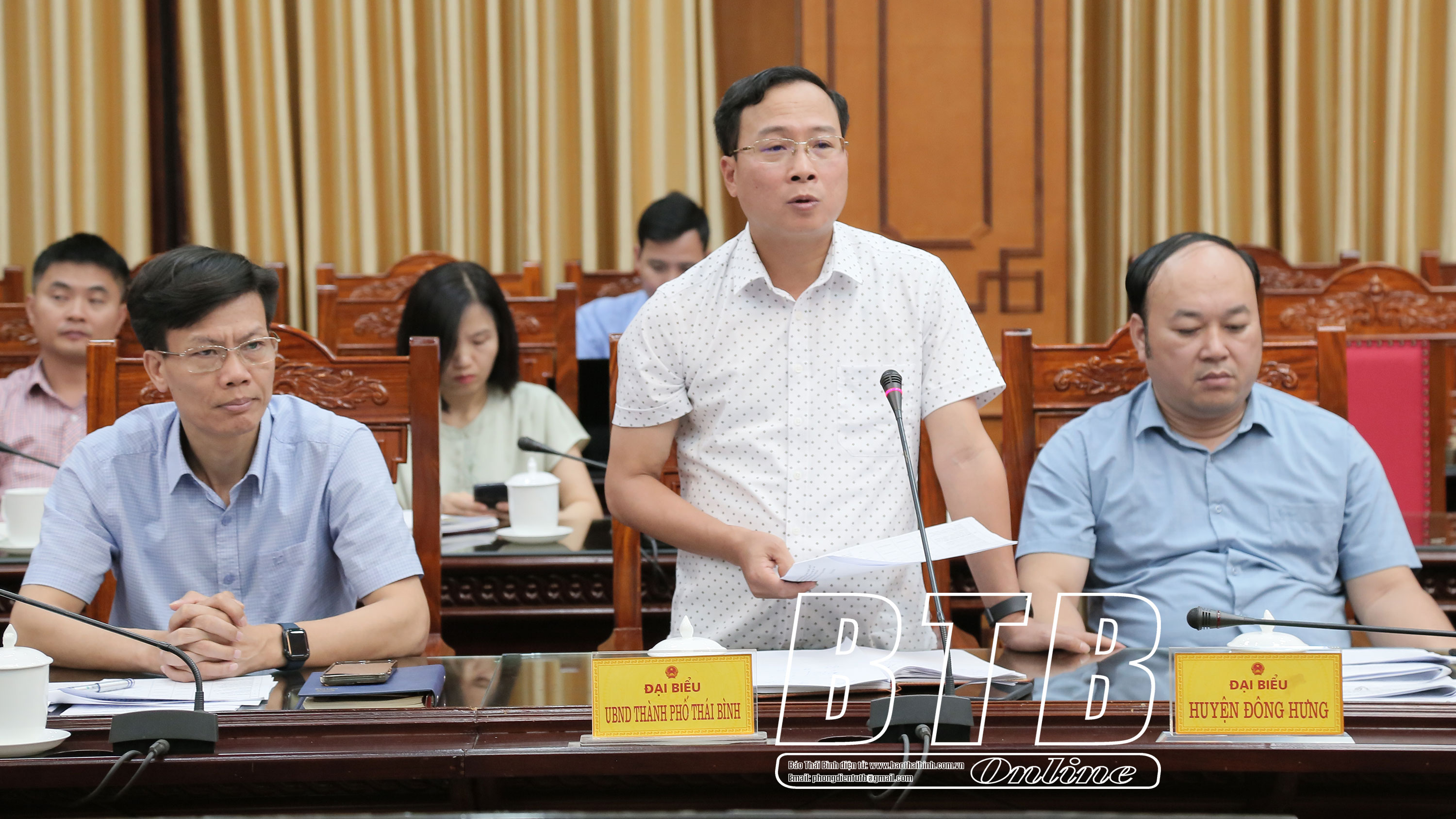 Lãnh đạo thành phố Thái Bình phát biểu tại cuộc họp.