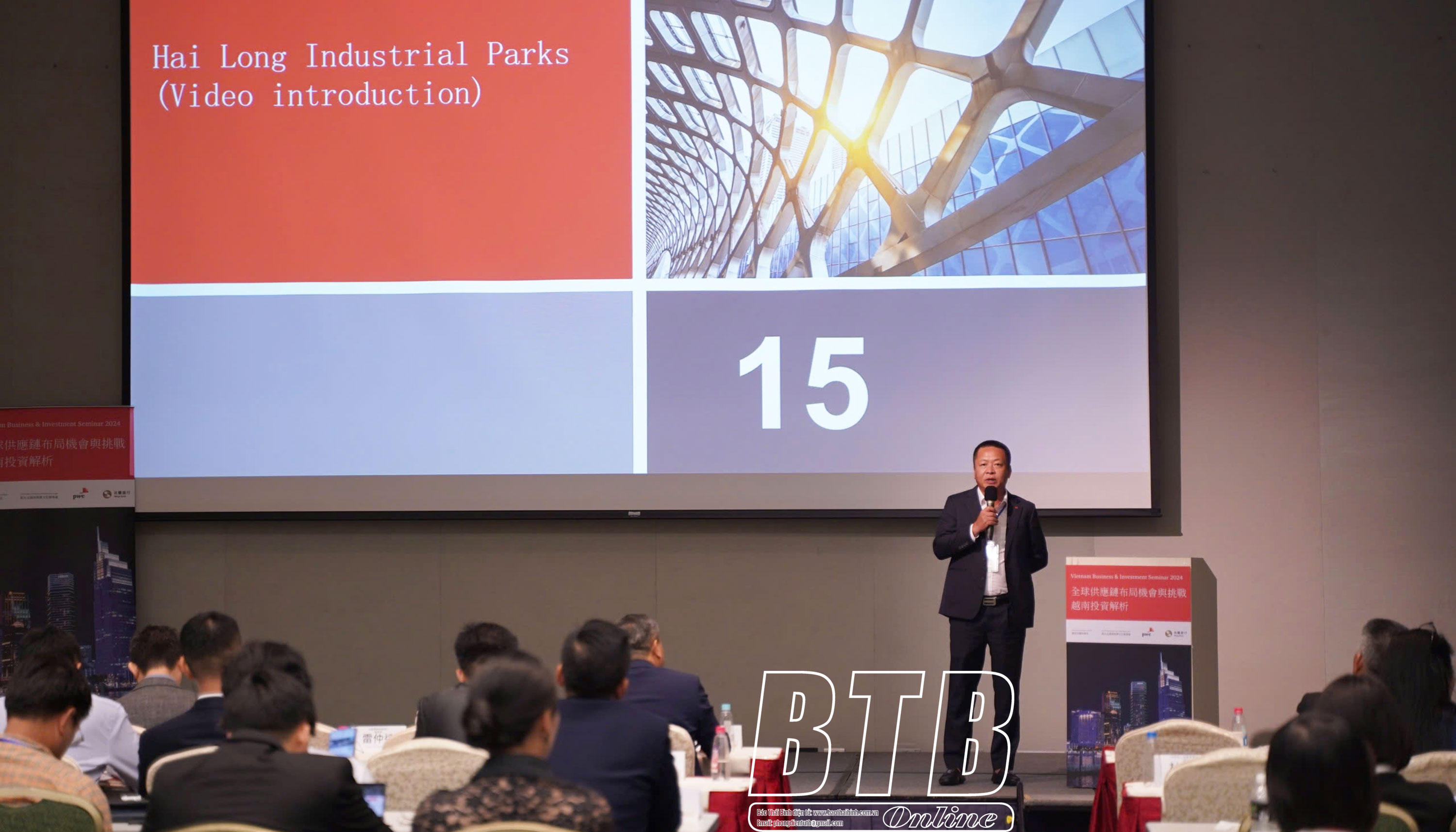 Tại hội thảo, lãnh đạo Công ty Cổ phần Đầu tư hạ tầng khu công nghiệp (KCN) Bảo Minh đã giới thiệu tiềm năng, thế mạnh, cơ hội hợp tác phát triển và kêu gọi các doanh nghiệp Đài Loan đầu tư vào KCN Hải Long, thuộc Khu kinh tế Thái Bình. KCN Hải Long có quy mô gần 300ha nằm ở vị trí đắc địa, giao thông kết nối thuận lợi cả đường bộ, đường thủy giúp hoạt động logistics, thông thương trong nước và quốc tế dễ dàng, nhanh chóng. Bảo Minh đầu tư hơn 2.200 tỷ đồng để xây dựng hệ thống hạ tầng kỹ thuật KCN đồng bộ, hiện đại tới chân hàng rào các dự án thứ cấp. Đầu tư vào KCN Hải Long, các doanh nghiệp được hưởng rất nhiều chính sách ưu đãi, hỗ trợ hấp dẫn theo quy định của Nhà nước, địa phương đối với khu kinh tế, KCN và cơ chế hỗ trợ thiết thực của nhà đầu tư hạ tầng.