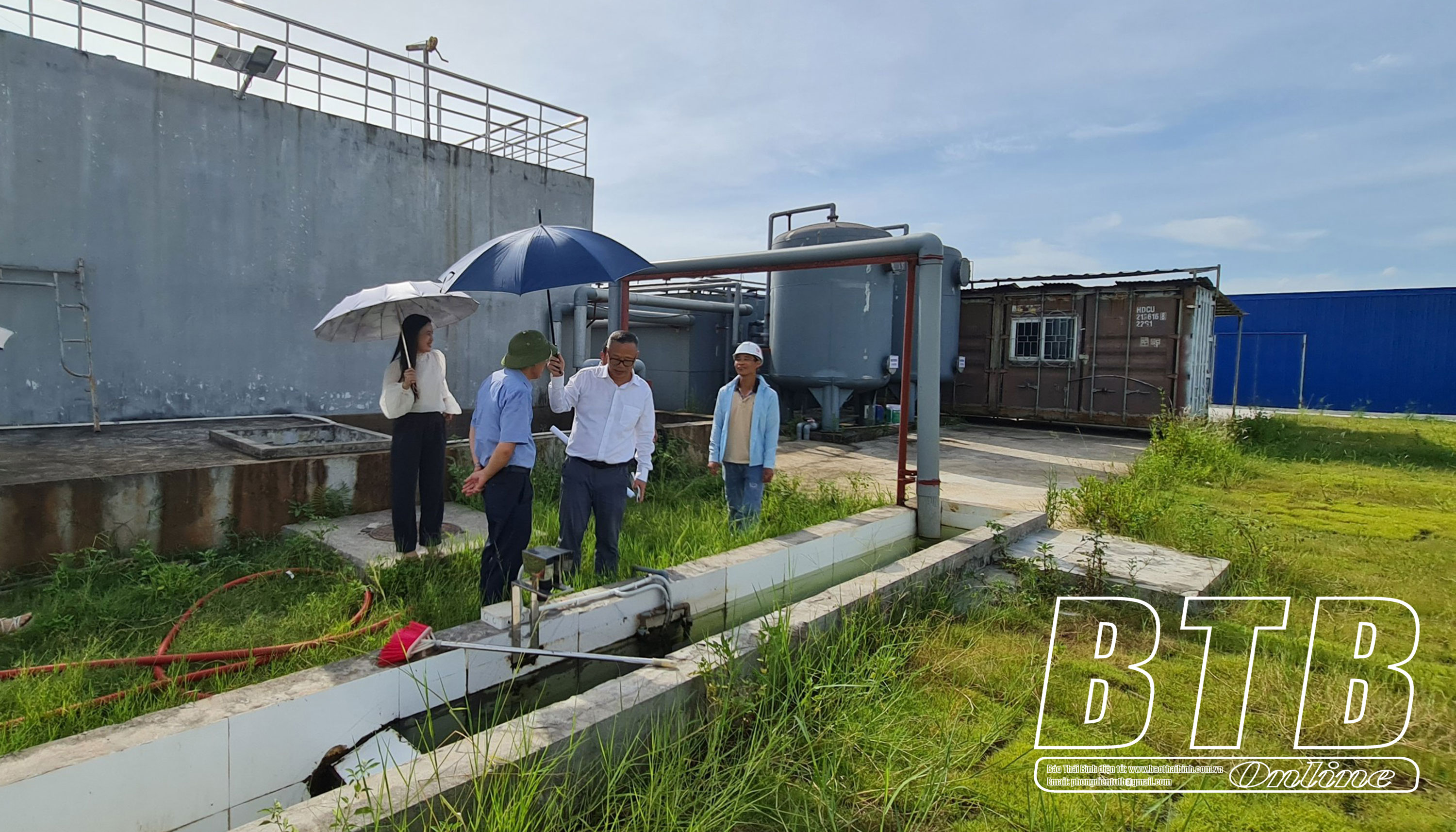 Đoàn kiểm tra hệ thống xử lý nước thải tập trung của CCN Quý Ninh, huyện Quỳnh Phụ.