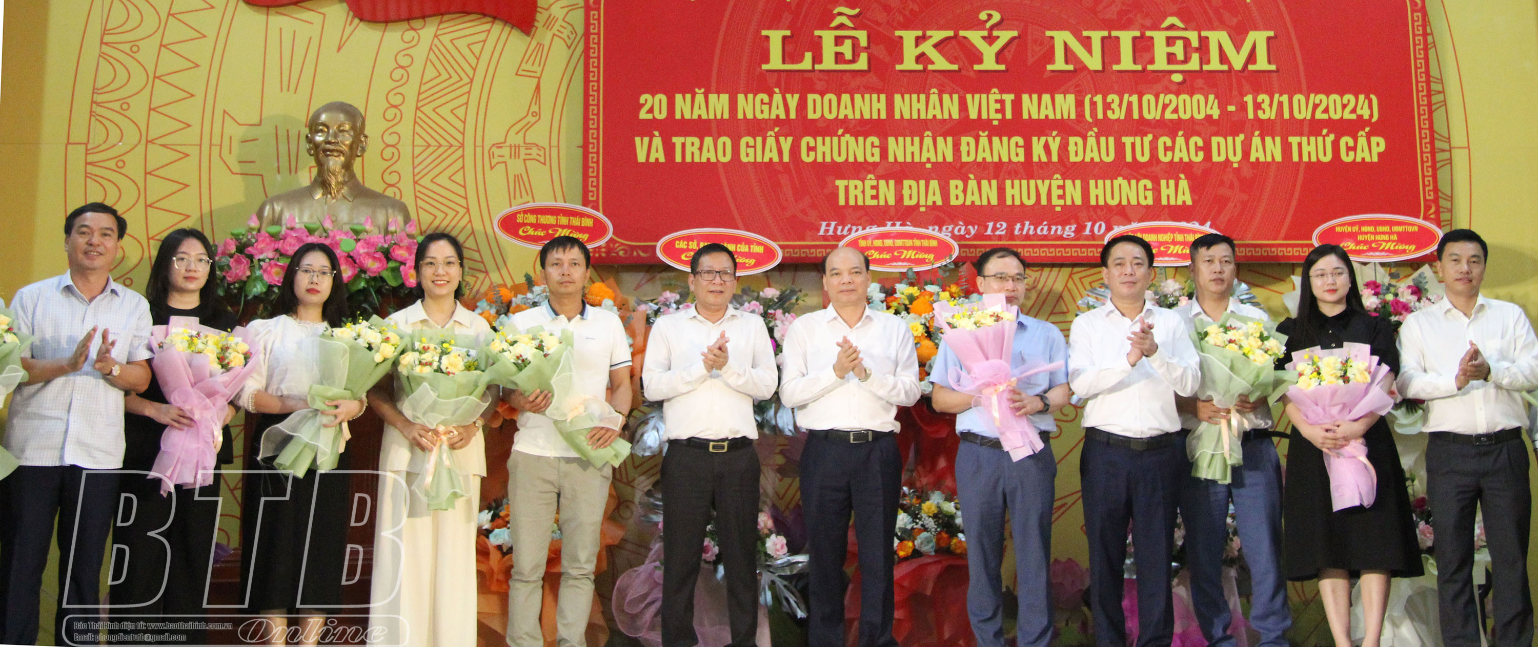 Nhân dịp này, các đồng chí lãnh đạo tỉnh và huyện Hưng Hà đã tặng hoa chúc mừng 13 doanh nghiệp ký cam kết đăng ký đầu tư vào cụm công nghiệp Hưng Nhân.