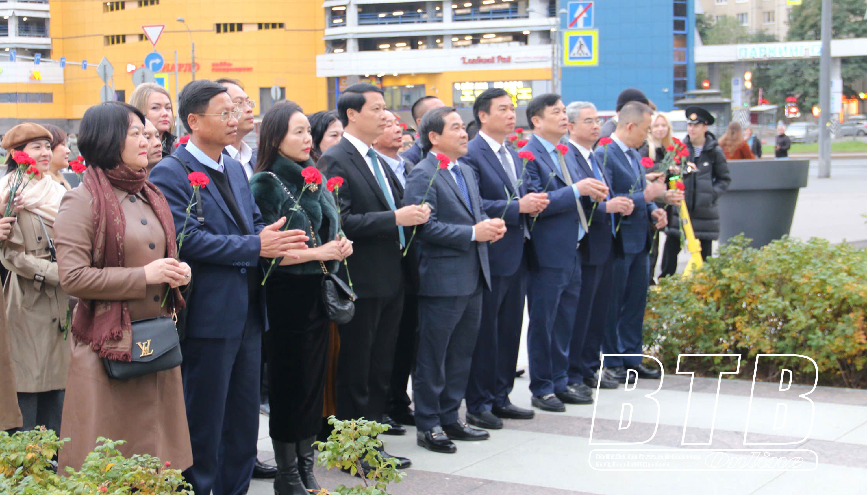 Đồng chí Nguyễn Tiến Thành, Phó Bí thư thường trực Tỉnh ủy, Chủ tịch HĐND tỉnh và thành viên đoàn công tác viếng Tượng đài Chủ tịch Hồ Chí Minh tại thành phố St. Petersburg.