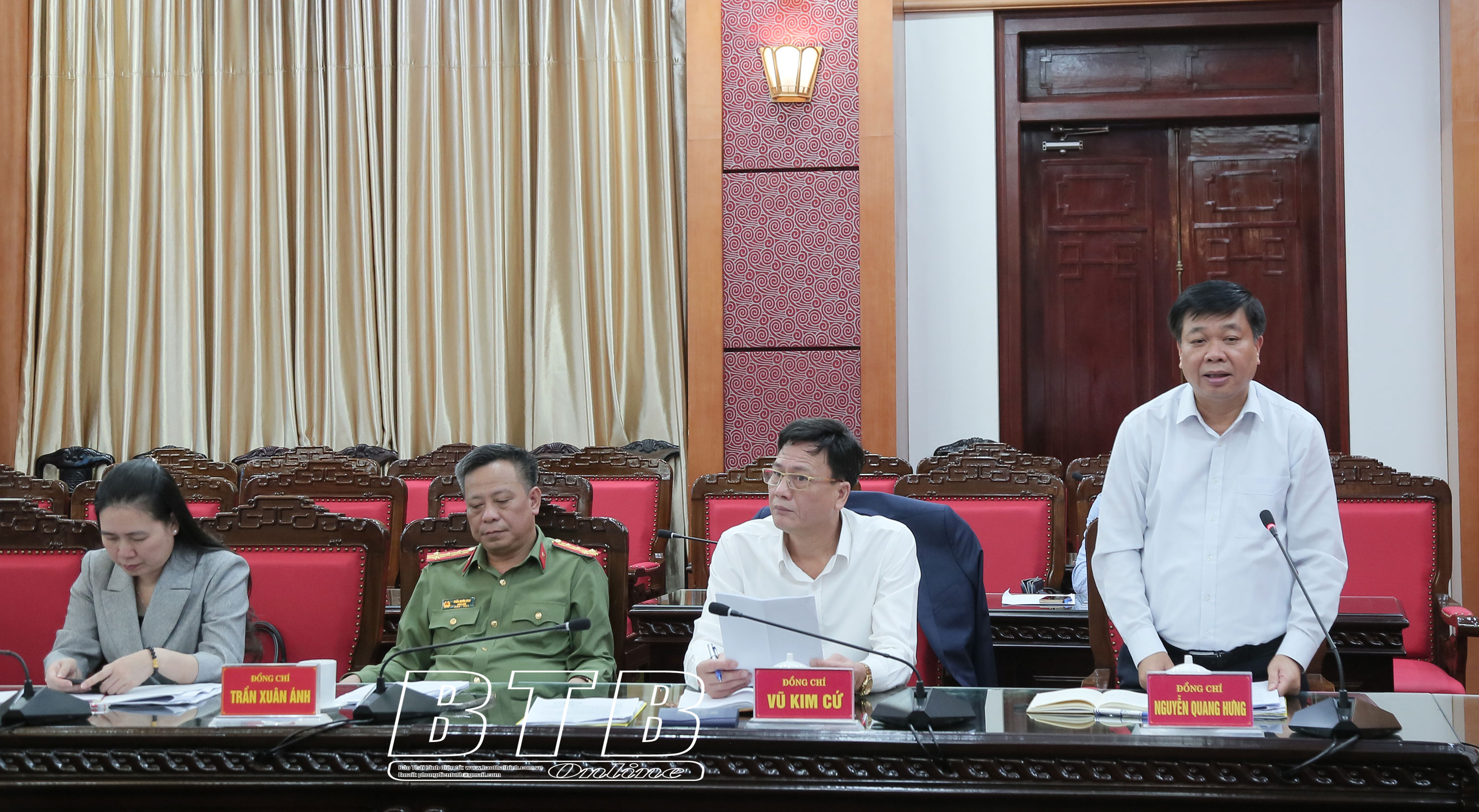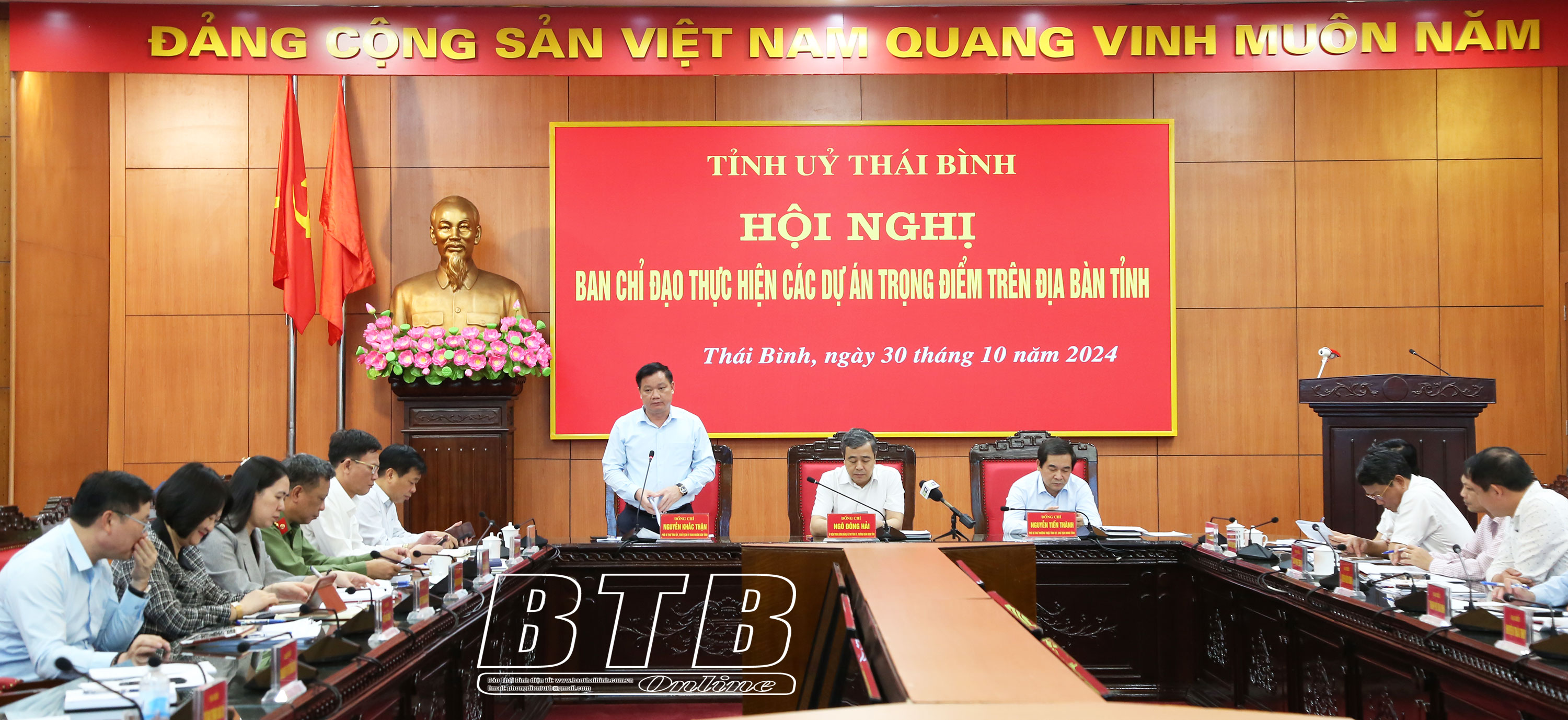 BCĐ đã nghe báo cáo tiến độ triển khai thực hiện dự án phát triển nhà ở khu dân cư tại xã Đông Hòa (thành phố); dự án phát triển nhà ở khu đô thị mới tại xã Tân Bình và phường Tiền Phong (thành phố); dự án trung tâm điện - khí LNG; dự án đầu tư xây dựng Bệnh viện Đa khoa tỉnh tại khu trung tâm y tế tỉnh; dự án đầu tư xây dựng và kinh doanh kết cấu hạ tầng khu công nghiệp VSIP Thái Bình; tiến độ thực hiện quy hoạch xây dựng khu đô thị dịch vụ thương mại cao cấp Cồn Vành - Cồn Thủ và dự án sân golf Cồn Vành.