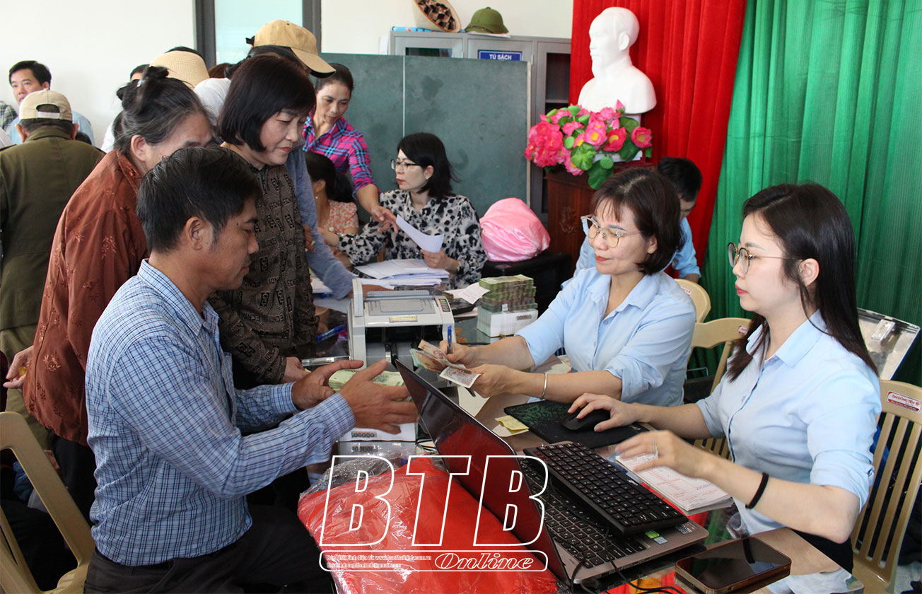 Người dân thôn Lộc Ninh (Nam Hưng) nhận tiền đền bù GPMB.