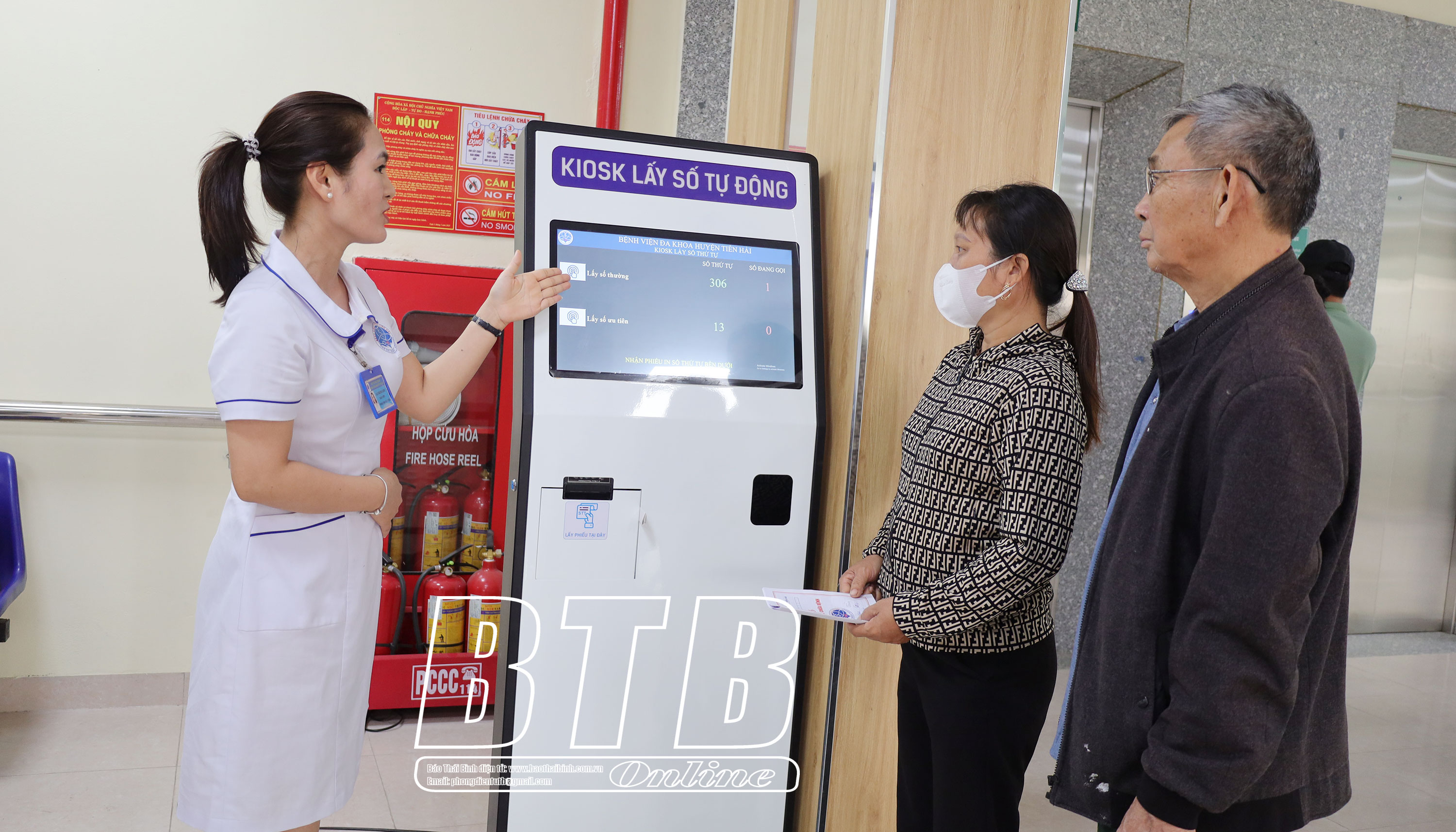 Người dân đến khám bệnh tại tòa nhà mới của Bệnh viện Đa khoa huyện Tiền Hải.