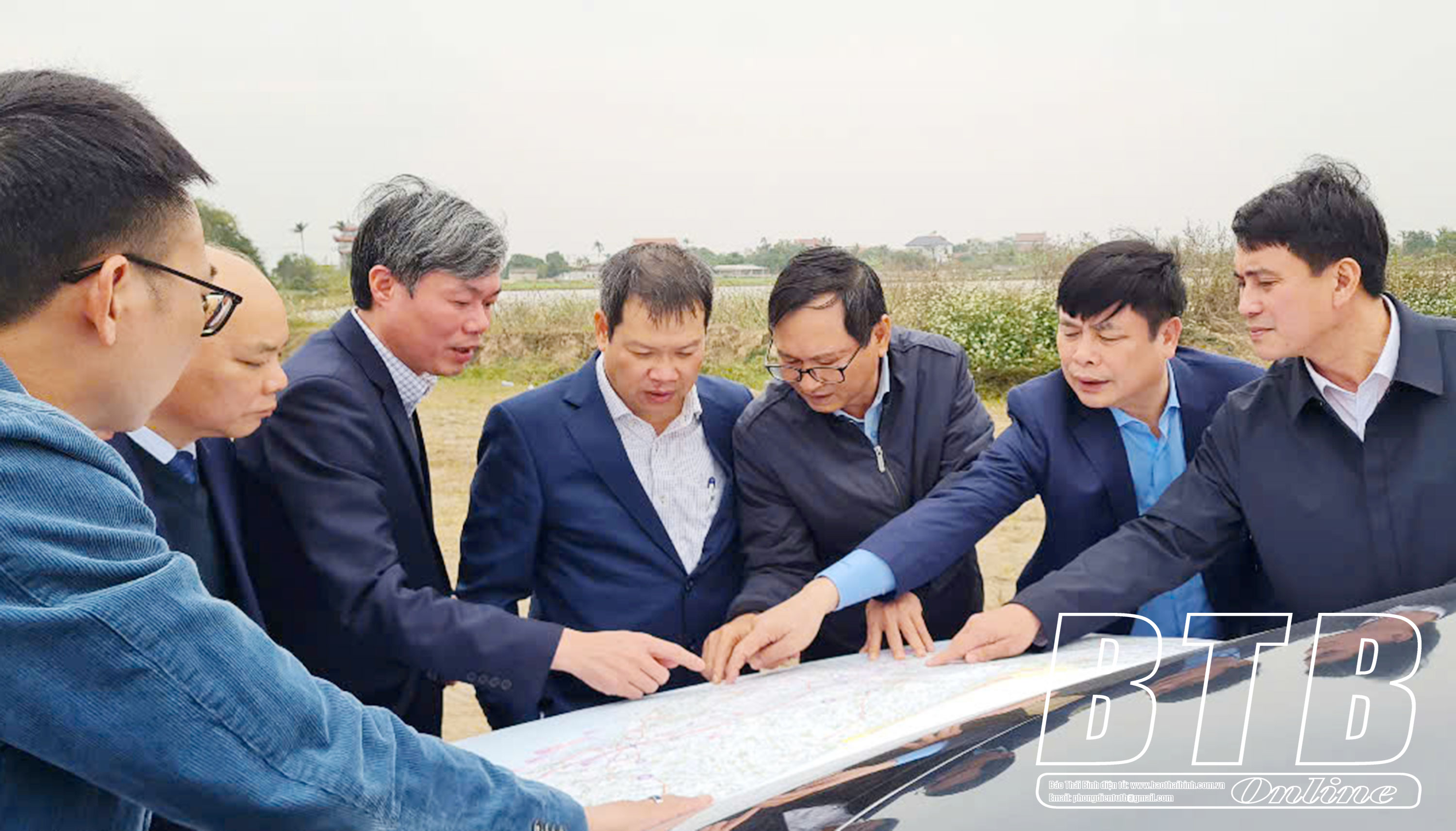 Các đồng chí lãnh đạo tỉnh kiểm tra tiến độ giải phóng mặt bằng tuyến đường bộ cao tốc CT.08 đoạn qua địa phận huyện Thái Thụy.