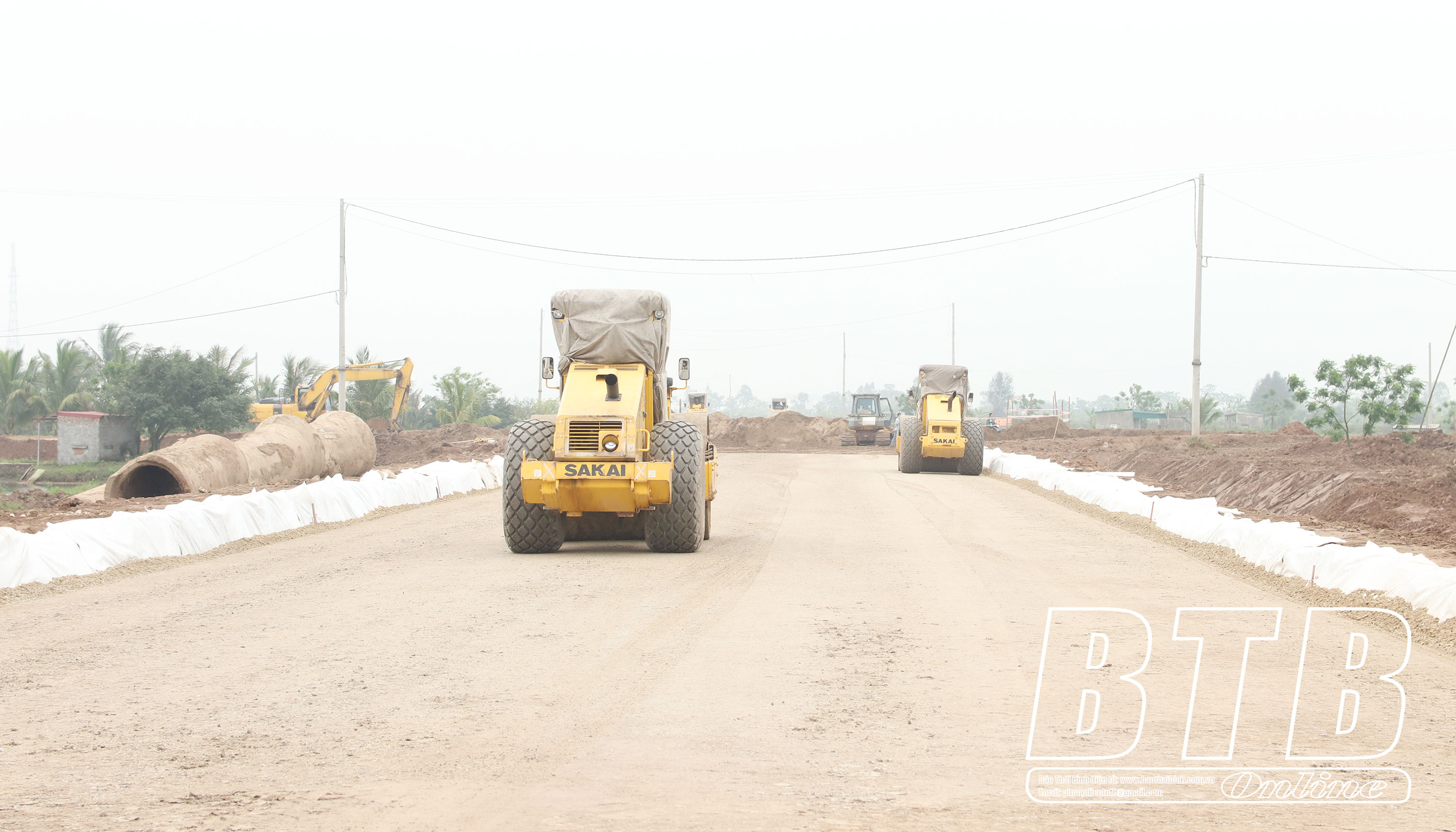 Thi công tuyến đường bộ ven biển, đoạn qua huyện Thái Thụy.