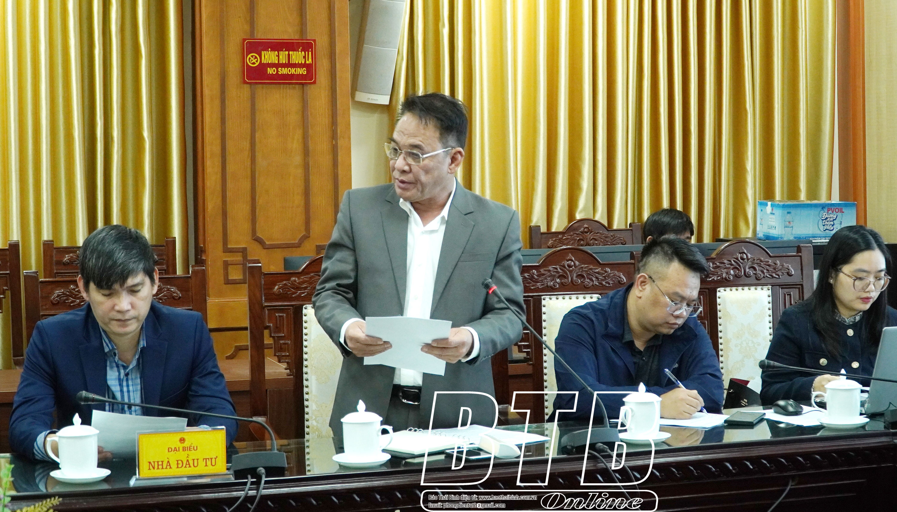 Liên danh nhà đầu tư hạ tầng CCN Thụy Ninh báo cáo phương án đầu tư hạ tầng CCN tại cuộc họp.