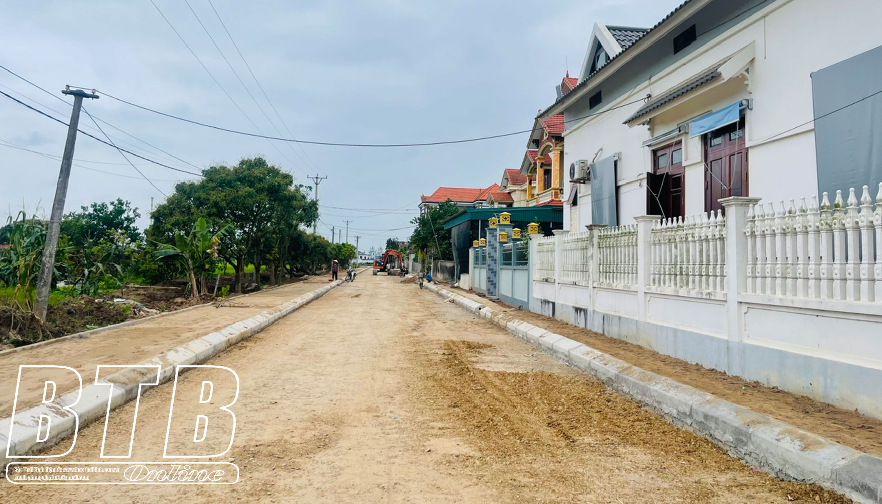 Diện mạo mới tại khu dân cư tổ dân phố Tây Xuyên, thị trấn Hưng Nhân (Hưng Hà) khi tuyến đường sắp hoàn thành.
