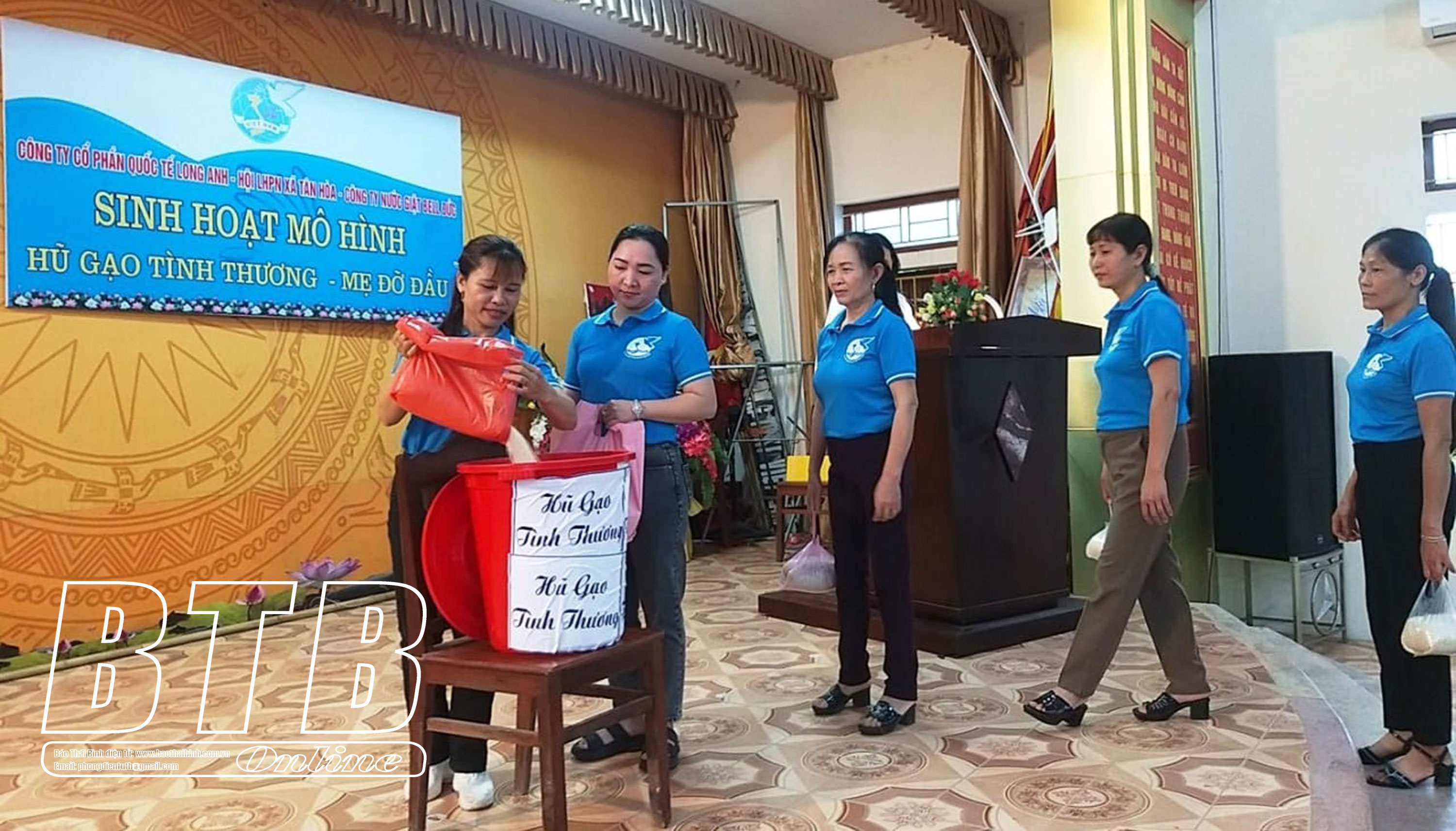Phụ nữ xã Tân Hòa (Hưng Hà) thực hiện mô hình hũ gạo tình thương.