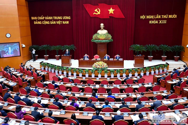 Thực hiện Chương trình làm việc toàn khóa, hôm nay, Ban Chấp hành Trung ương Đảng khóa XIII tổ chức Hội nghị lần thứ 10. Hội nghị diễn ra vào thời điểm rất đặc biệt: Đồng chí Tổng Bí thư Nguyễn Phú Trọng, nhà lãnh đạo đặc biệt xuất sắc, nhà tư tưởng, ngọn cờ lý luận của Đảng đã vĩnh biệt chúng ta vào thời điểm toàn Đảng, toàn dân, toàn quân đang quyết tâm thực hiện thắng lợi toàn diện Nghị quyết Đại hội XIII của Đảng; cơn bão số 3 gây thiệt hại hết sức nặng nề về người và tài sản ở hầu hết các tỉnh, thành phố phía bắc; khi toàn Đảng, toàn quân, toàn dân đang tập trung nỗ lực cao nhất để khắc phục hậu quả do cơn bão gây ra...