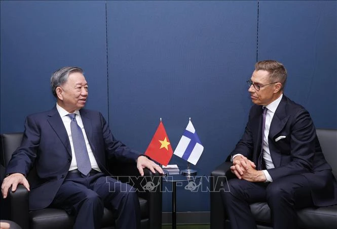 Gặp Tổng thống Phần Lan Alexander Stubb, Tổng Bí thư, Chủ tịch nước khẳng định Việt Nam coi trọng phát triển quan hệ hữu nghị truyền thống và hợp tác nhiều mặt với Phần Lan; cảm ơn Chính phủ và Nhân dân Phần Lan đã hỗ trợ Việt Nam trong giai đoạn khó khăn trước đây và từng bước phát triển, đặc biệt là thực hiện tốt các mục tiêu phát triển bền vững (SDGs) cũng như đã gửi lời thăm hỏi, động viên nhân dân Việt Nam khắc phục hậu quả của cơn bão số 3 vừa qua.