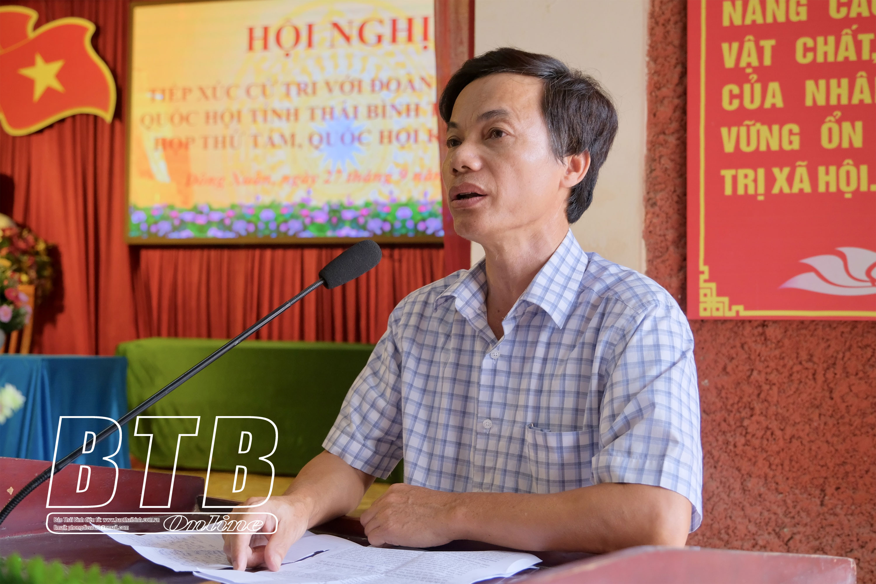 Cử tri huyện Đông Hưng phát biểu ý kiến, kiến nghị tại hội nghị.