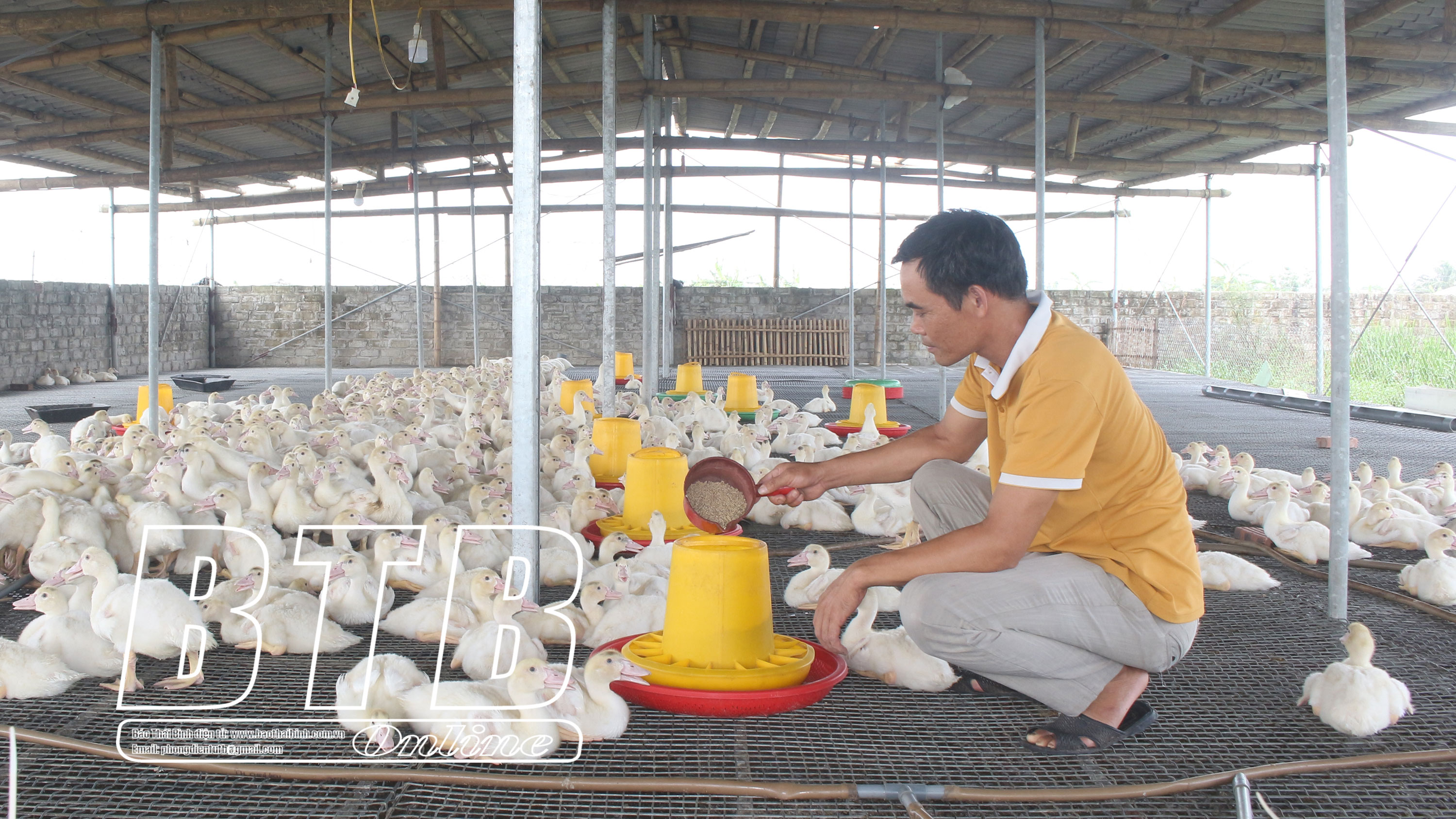 Gia đình anh Tô Văn Đạt, thôn Tào Xá, xã Đông Cường phát triển mô hình nuôi ngan từ vốn tín chấp của Agribank Đông Hưng.