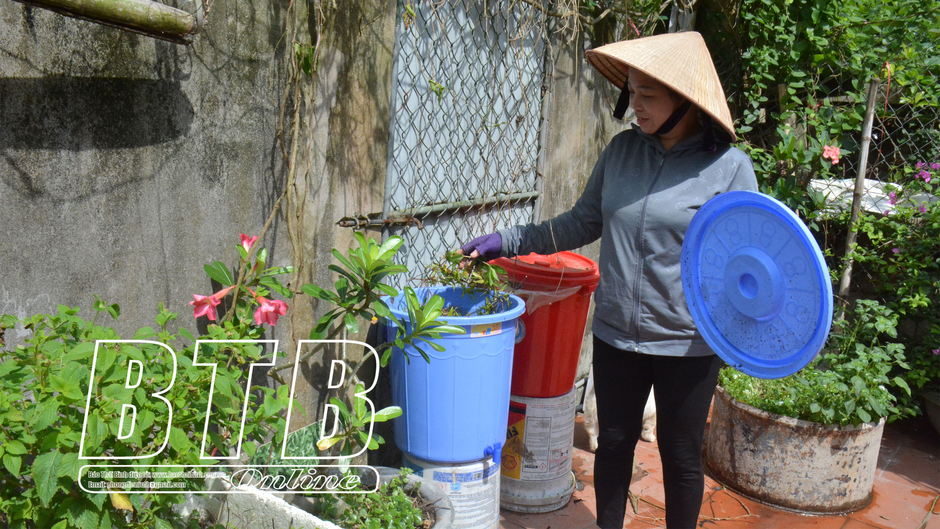 Gia đình bà Bùi Thị Quynh là một trong những hộ đầu tiên tham gia mô hình “Nhà sạch, ngõ đẹp” của thôn Thái Hòa, xã Bình Định (Kiến Xương). Ý thức được tầm quan trọng của môi trường, cảnh quan, không gian sống với sức khỏe của mỗi người và mỹ quan chung của khu dân cư, bà Quynh thực hiện vệ sinh, lau dọn, sắp xếp nhà cửa ngăn nắp, gọn gàng, quét dọn sân, ngõ sạch sẽ. Bà cho biết: Là người vợ, người mẹ, người bà, tôi gương mẫu thực hiện, các con, các cháu noi theo. Từ việc phân loại rác, giữ gìn vệ sinh tại gia đình, trường học, nơi công cộng đến việc trồng và chăm sóc cây xanh.