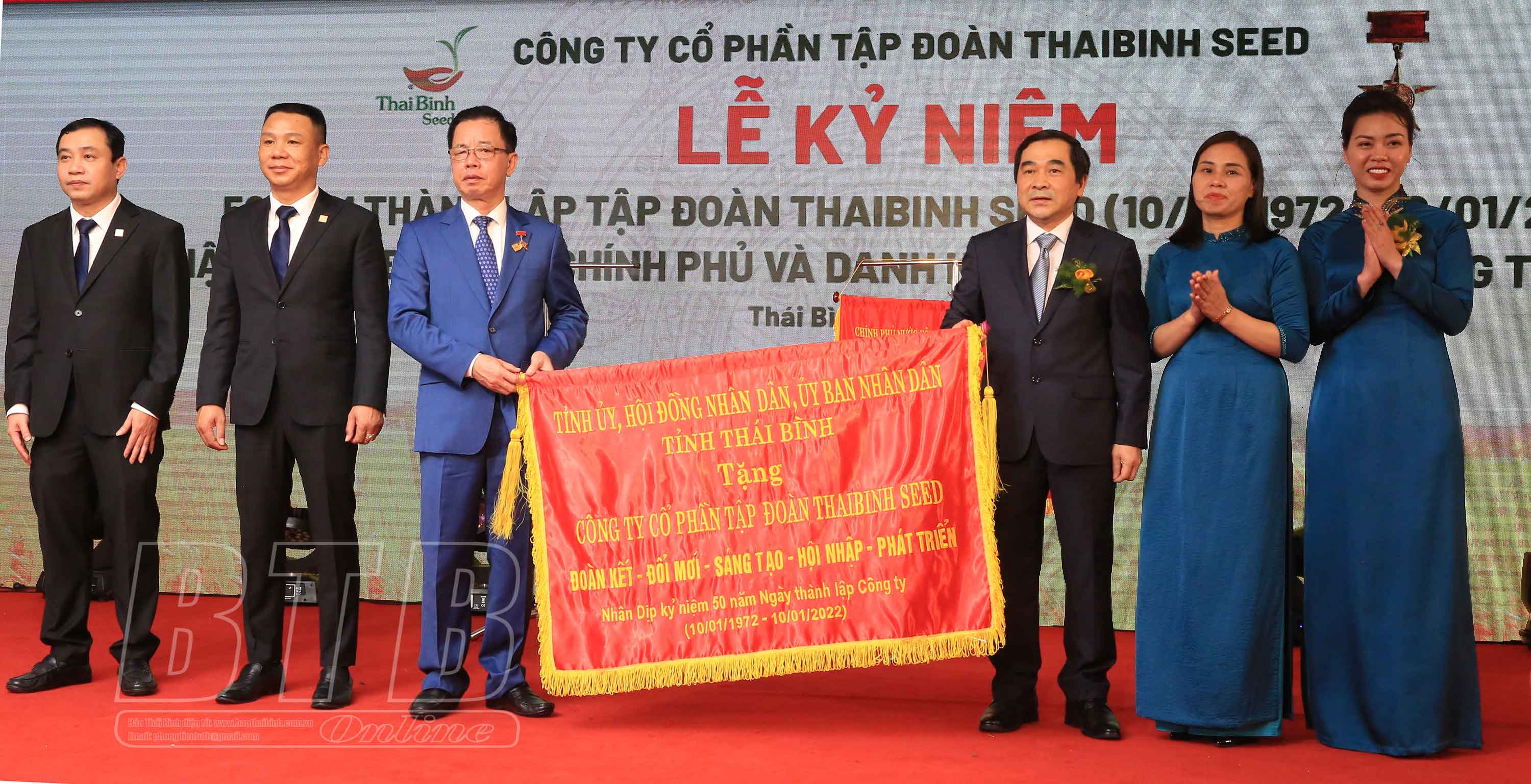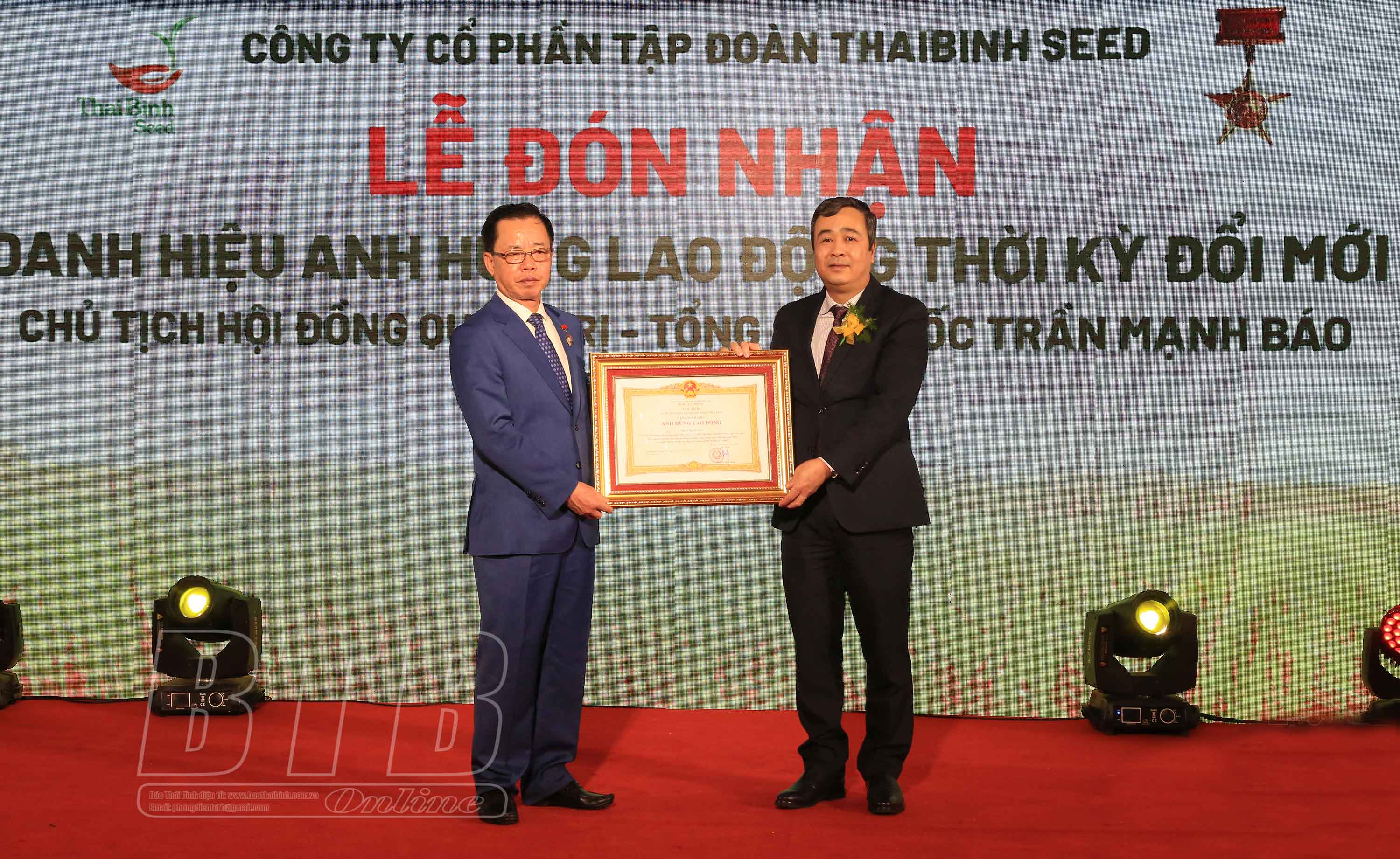 Tại buổi lễ, đồng chí Ngô Đông Hải, Ủy viên Ban Chấp hành Trung ương Đảng, Bí thư Tỉnh ủy đã trao tặng danh hiệu Anh hùng Lao động thời kỳ đổi mới cho ông Trần Mạnh Báo, Chủ tịch HĐQT, Tổng Giám đốc ThaiBinh Seed; đồng chí Nguyễn Khắc Thận, Phó Bí thư Tỉnh ủy, Chủ tịch UBND tỉnh trao tặng Cờ thi đua của Chính phủ; lãnh đạo Tổng Liên đoàn Lao động Việt Nam trao tặng Cờ thi đua đơn vị xuất sắc toàn diện; đồng chí Nguyễn Tiến Thành, Phó Bí thư Thường trực Tỉnh ủy, Chủ tịch HĐND tỉnh trao tặng bức trướng của Tỉnh ủy, HĐND, UBND tỉnh mang dòng chữ "Đoàn kết – Đổi mới – Sáng tạo – Hội nhập - Phát triển" cho ThaiBinh Seed.