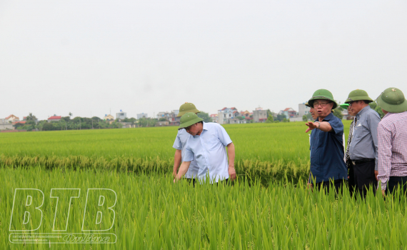 Thứ trưởng Bộ Nông nghiệp và Phát triển nông thôn Lê Quốc Doanh thăm điểm liên kết sản xuất lúa giống TBR225 có gen kháng bạc lá tại xã Thụy Ninh (Thái Thụy).