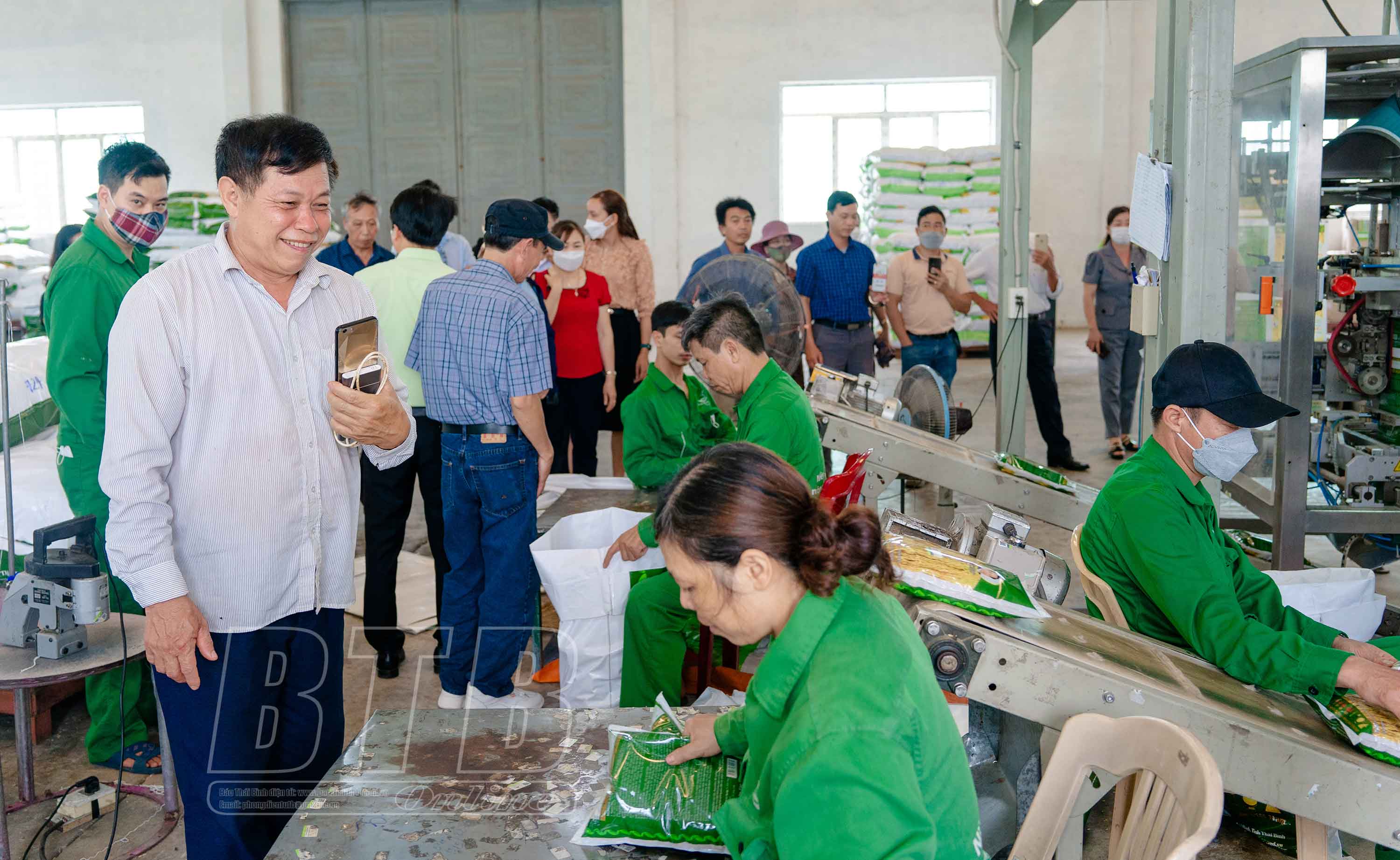 Các đại biểu thăm Nhà máy chế biến hạt giống của ThaiBinh Seed tại xã Vũ Chính, thành phố Thái Bình.