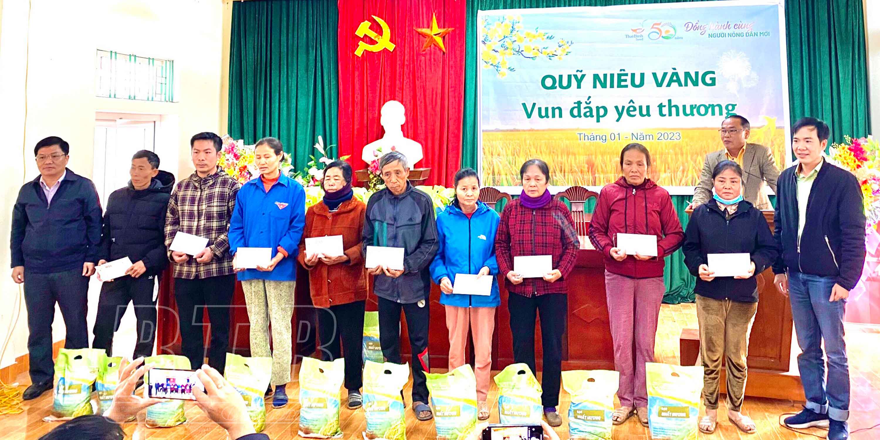 Trên 1.300 phần quà trị giá 520 triệu đồng trích từ quỹ từ thiện Niêu Vàng do ThaiBinh Seed gây dựng được trao tặng cho người có công, thương bệnh binh, hội viên hội người mù, hộ gia đình nghèo trên nhiều tỉnh, thành phố; giúp các gia đình đón tết Nguyên đán Quý Mão ấm no, vẹn tròn hơn. Tại Thái Bình, quỹ đã trao hơn 900 phần quà ý nghĩa cho người có công, thương bệnh binh, hội viên hội người mù, hộ gia đình nghèo.