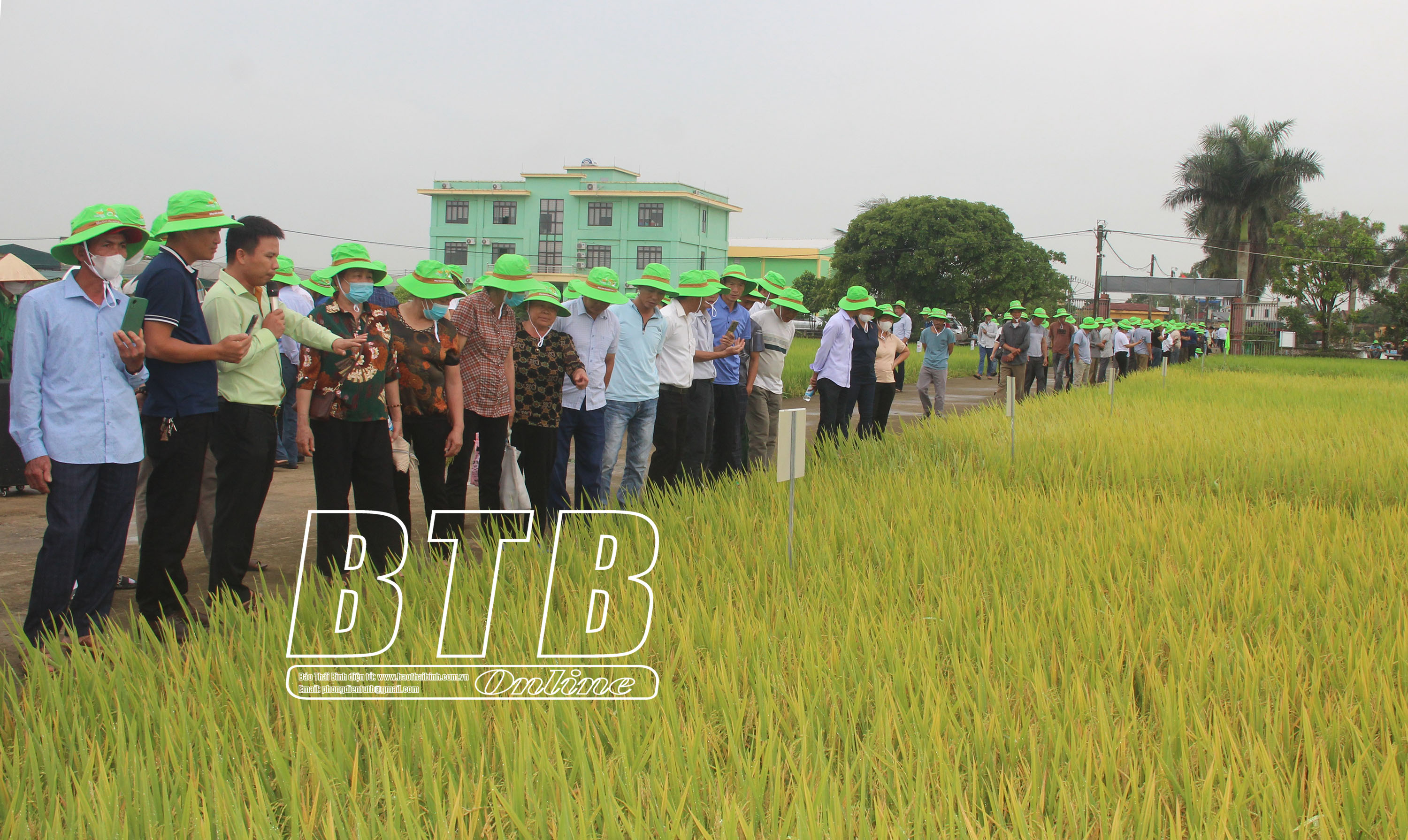 Trước đó, các đại biểu đã tham quan, đánh giá một số giống lúa mới tại Viện Nghiên cứu cây trồng của ThaiBinh Seed tại xã Đông Xá (Đông Hưng).