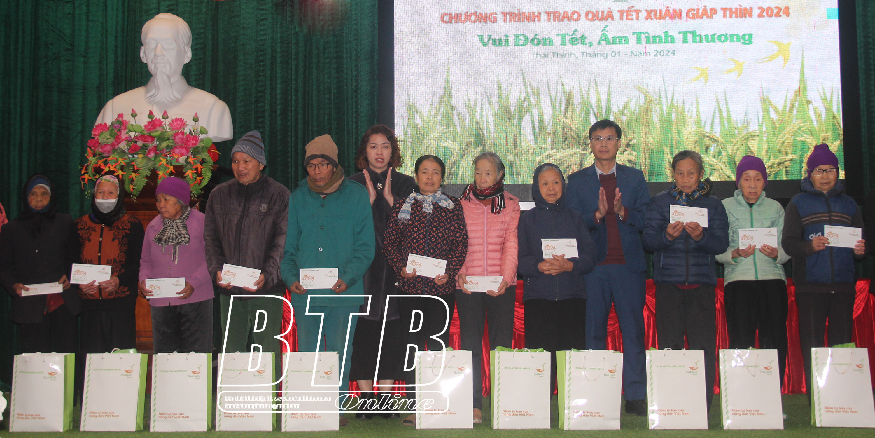Nhân dịp tết Nguyên đán Giáp Thìn, sáng ngày 24/1, Công ty Cổ phần Tập đoàn ThaiBinh Seed tổ chức trao quà “Vui đón tết, ấm tình thương” cho các hộ có hoàn cảnh khó khăn, nông dân liên kết sản xuất với công ty tại huyện Thái Thụy.