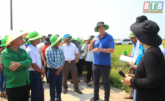 Đoàn ngoại giao cấp cao Tổ chức Phát triển Hà Lan thăm mô hình trình diễn giống lúa BC15