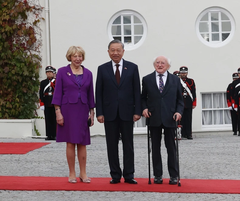 Vào khoảng 11 giờ 40 phút, ngày 2/10, theo giờ địa phương (17 giờ 40 phút giờ Hà Nội), Tổng thống Michael D. Higgins cùng phu nhân chủ trì Lễ đón Tổng Bí thư, Chủ tịch nước Tô Lâm cùng đoàn đại biểu cấp cao Việt Nam thăm cấp Nhà nước Ireland (từ ngày 1 đến 3/10) diễn ra trọng thể tại Phủ Tổng thống Ireland.