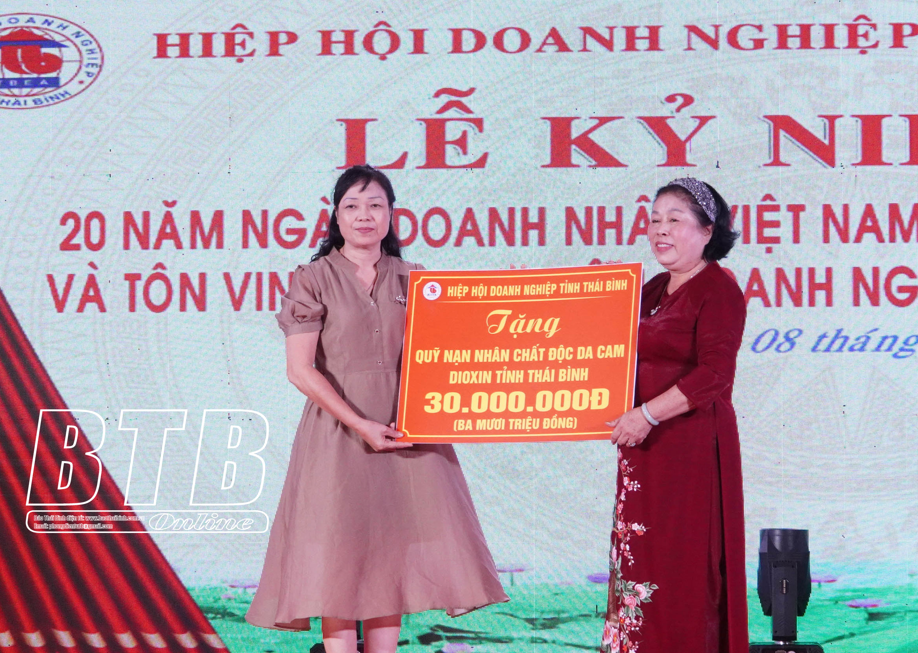 Nhân dịp này, Hiệp hội Doanh nghiệp tỉnh tổ chức tôn vinh, trao bằng khen của Hiệp hội Doanh nghiệp nhỏ và vừa Việt Nam - VCCI và của UBND tỉnh cho 61 tập thể, cá nhân có thành tích xuất sắc trong sản xuất, kinh doanh, đóng góp vào sự phát triển cộng đồng doanh nghiệp Việt Nam và phát triển kinh tế - xã hội của tỉnh. Trao 90 triệu đồng ủng hộ quỹ vì người nghèo tỉnh, quỹ nạn nhân chất độc da cam/đioxin tỉnh, quỹ bảo trợ người khuyết tật và bảo vệ quyền trẻ em tỉnh.