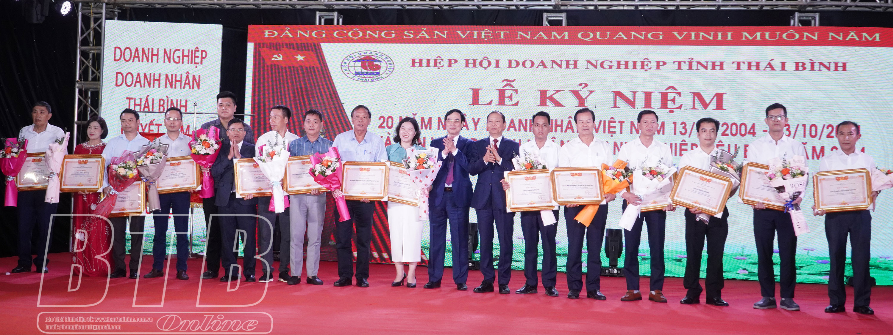 Ghi nhận và đánh giá cao những đóng góp của cộng đồng doanh nghiệp, doanh nhân đối với sự phát triển kinh tế - xã hội của tỉnh trong 20 năm qua, Tỉnh ủy, HĐND, UBND tỉnh đã tặng Hiệp hội Doanh nghiệp tỉnh bức trướng với nội dung “Đoàn kết – Phát triển – Bứt phá thành công”.