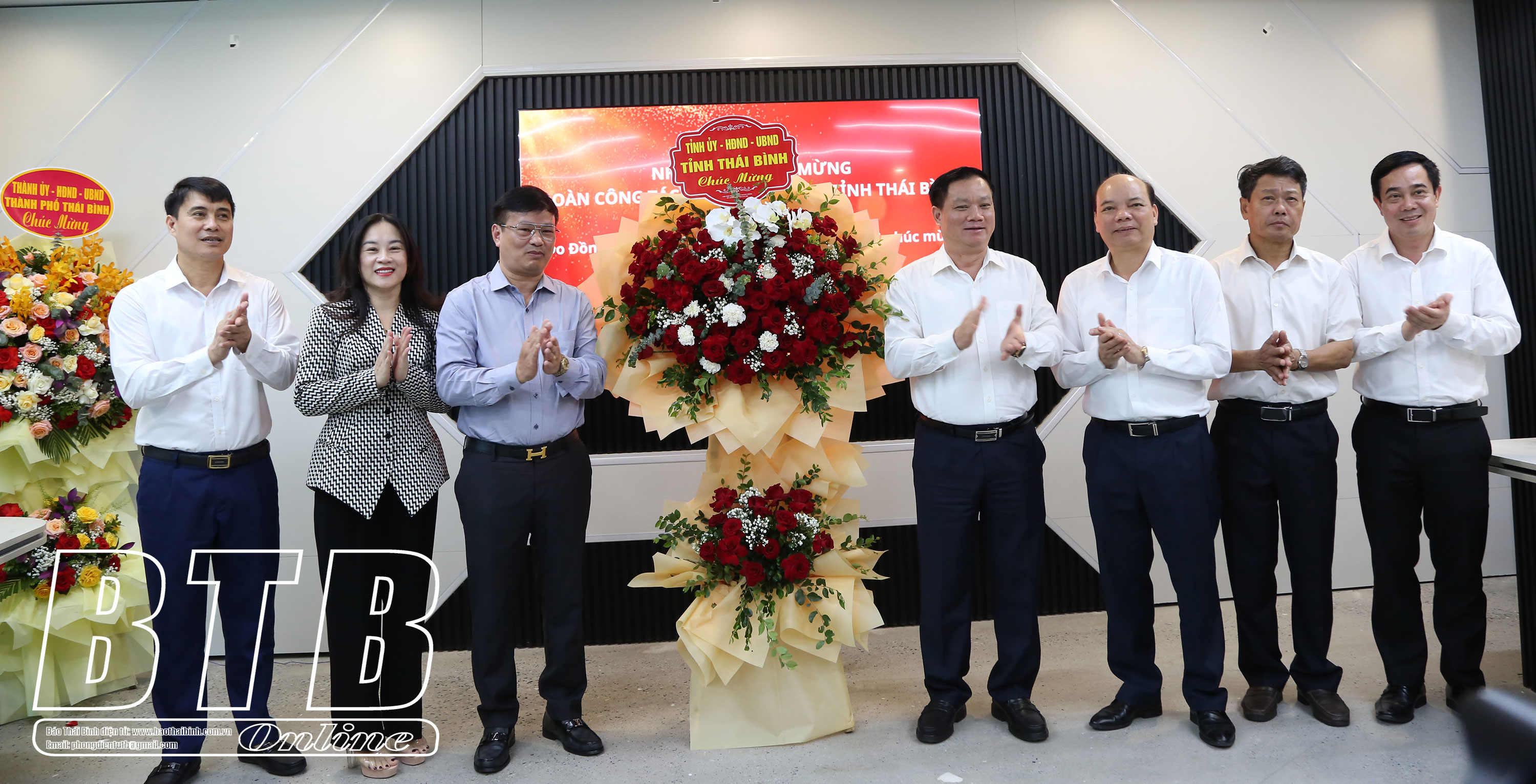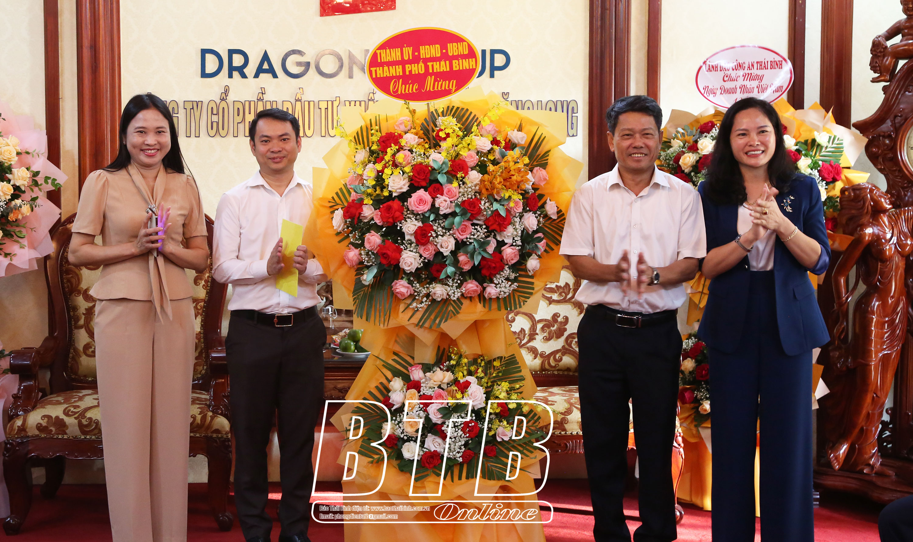 Lãnh đạo thành phố Thái Bình tặng hoa chúc mừng Công ty Cổ phần Đầu tư xuất nhập khẩu Thăng Long.