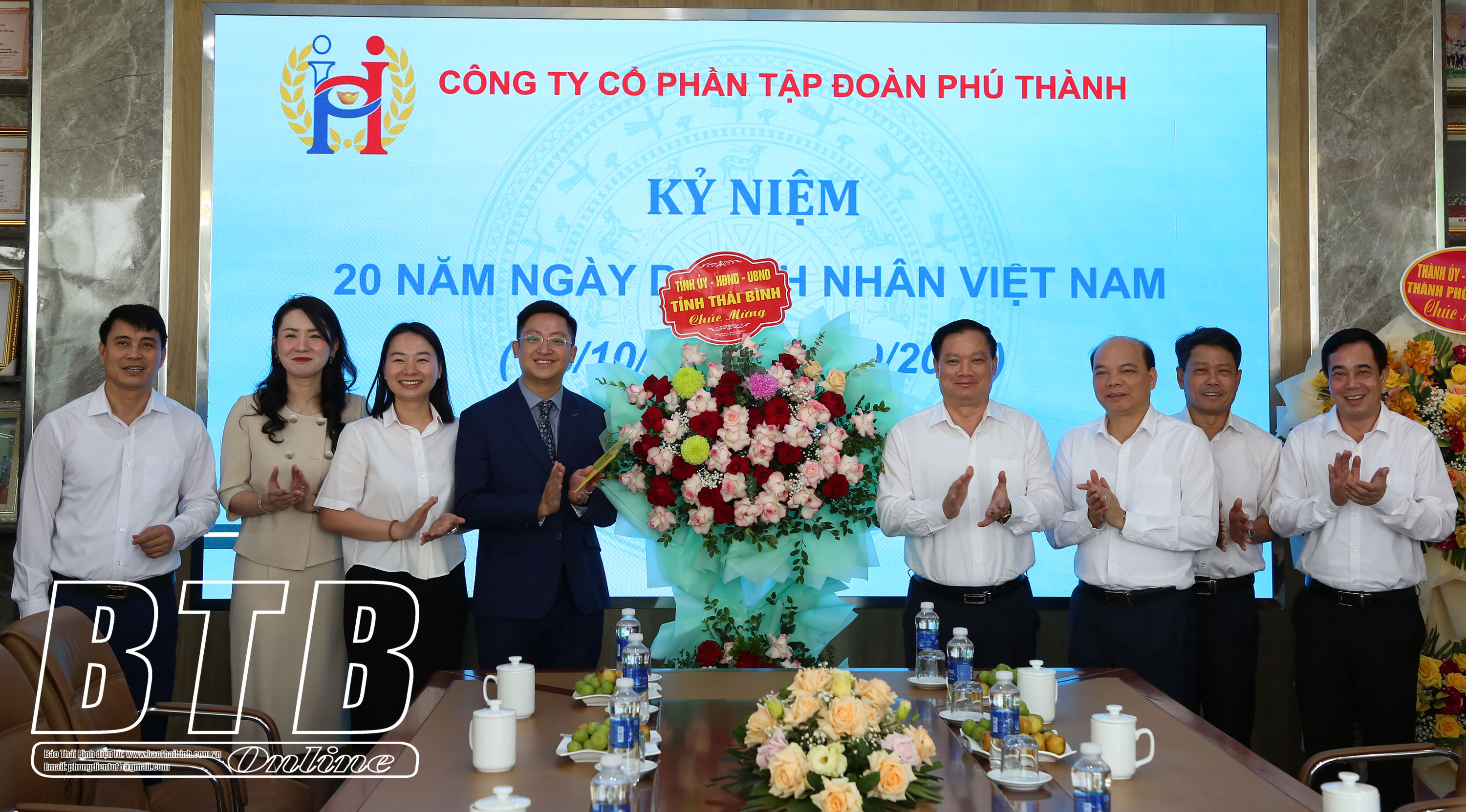 Sáng ngày 11/10, nhân kỷ niệm ngày Doanh nhân Việt Nam, đồng chí Nguyễn Khắc Thận, Phó Bí thư Tỉnh ủy, Chủ tịch UBND tỉnh cùng các đồng chí Ủy viên Ban Thường vụ Tỉnh ủy, lãnh đạo HĐND tỉnh, Đoàn đại biểu Quốc hội tỉnh, lãnh đạo Sở Công Thương, Văn phòng UBND tỉnh và thành phố Thái Bình đã tới thăm, chúc mừng một số doanh nghiệp, doanh nhân trên địa bàn thành phố Thái Bình.