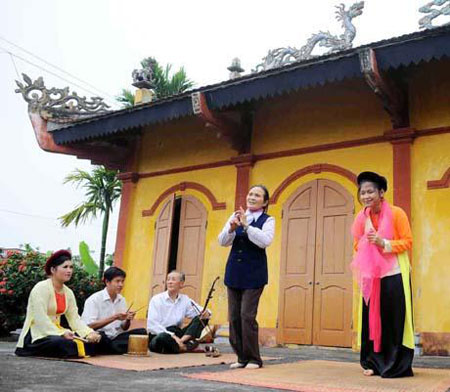 Một buổi tập chèo của CLB chèo làng Khuốc.