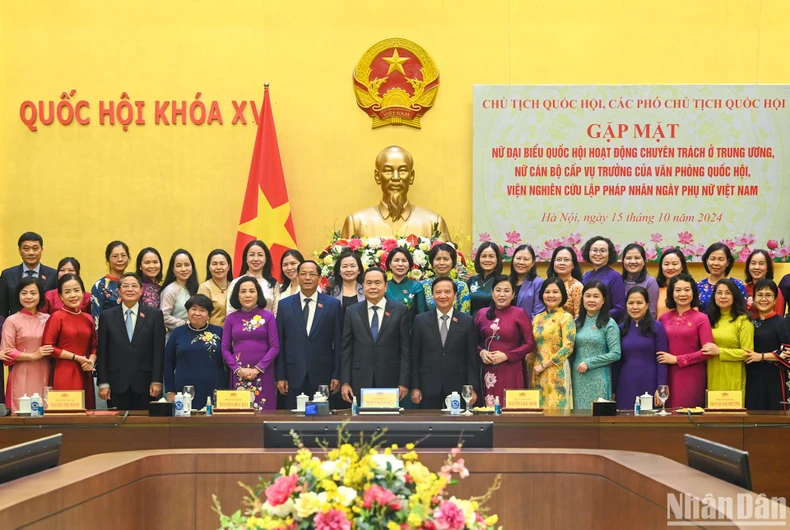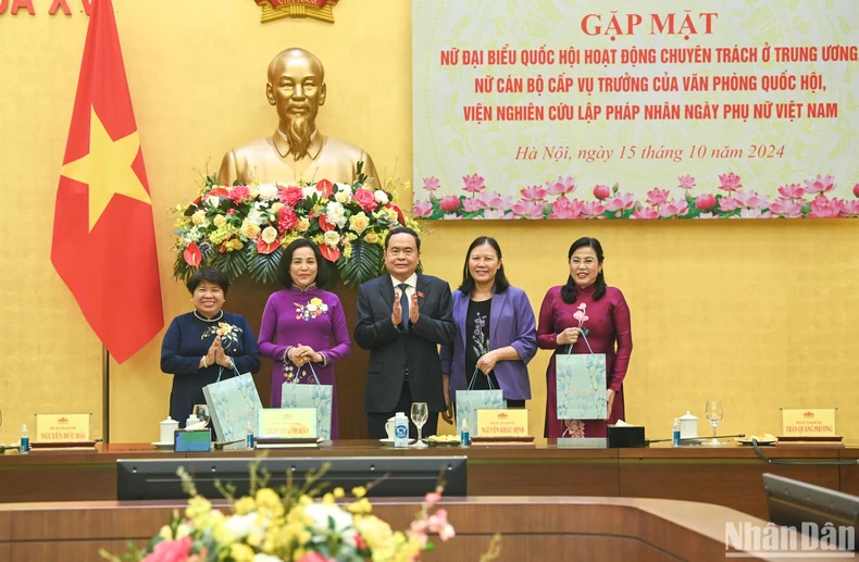 Phát biểu tại cuộc gặp mặt, Chủ tịch Quốc hội Trần Thanh Mẫn nhấn mạnh truyền thống hào hùng của phụ nữ Việt Nam đóng góp lớn trong công cuộc bảo vệ, xây dựng đất nước, được Bác Hồ tặng 8 chữ vàng "Anh hùng-Bất khuất-Trung hậu-Đảm đang".