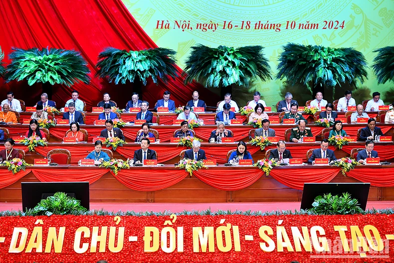 Toàn cảnh phiên làm việc đầu tiên của Đại hội đại biểu toàn quốc Mặt trận Tổ quốc Việt Nam lần thứ X, nhiệm kỳ 2024-2029.