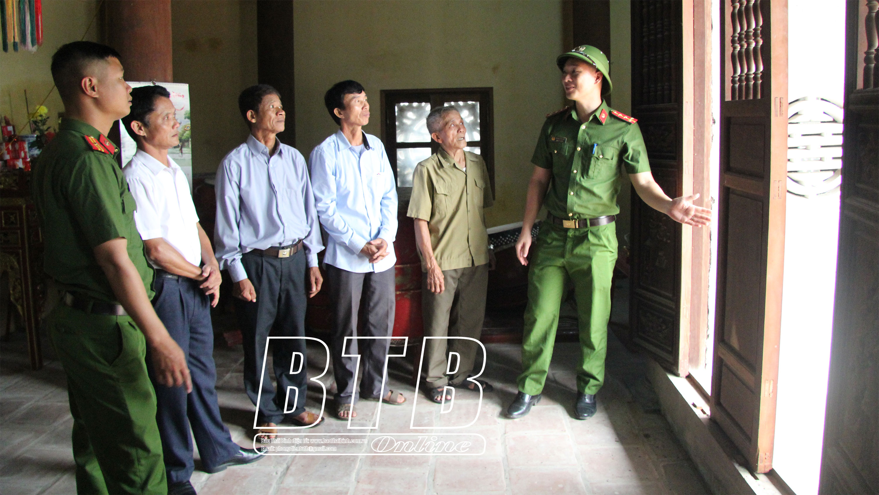 Lực lượng Công an huyện hướng dẫn các biện pháp bảo vệ các di tích lịch sử tại xã Chí Hòa.