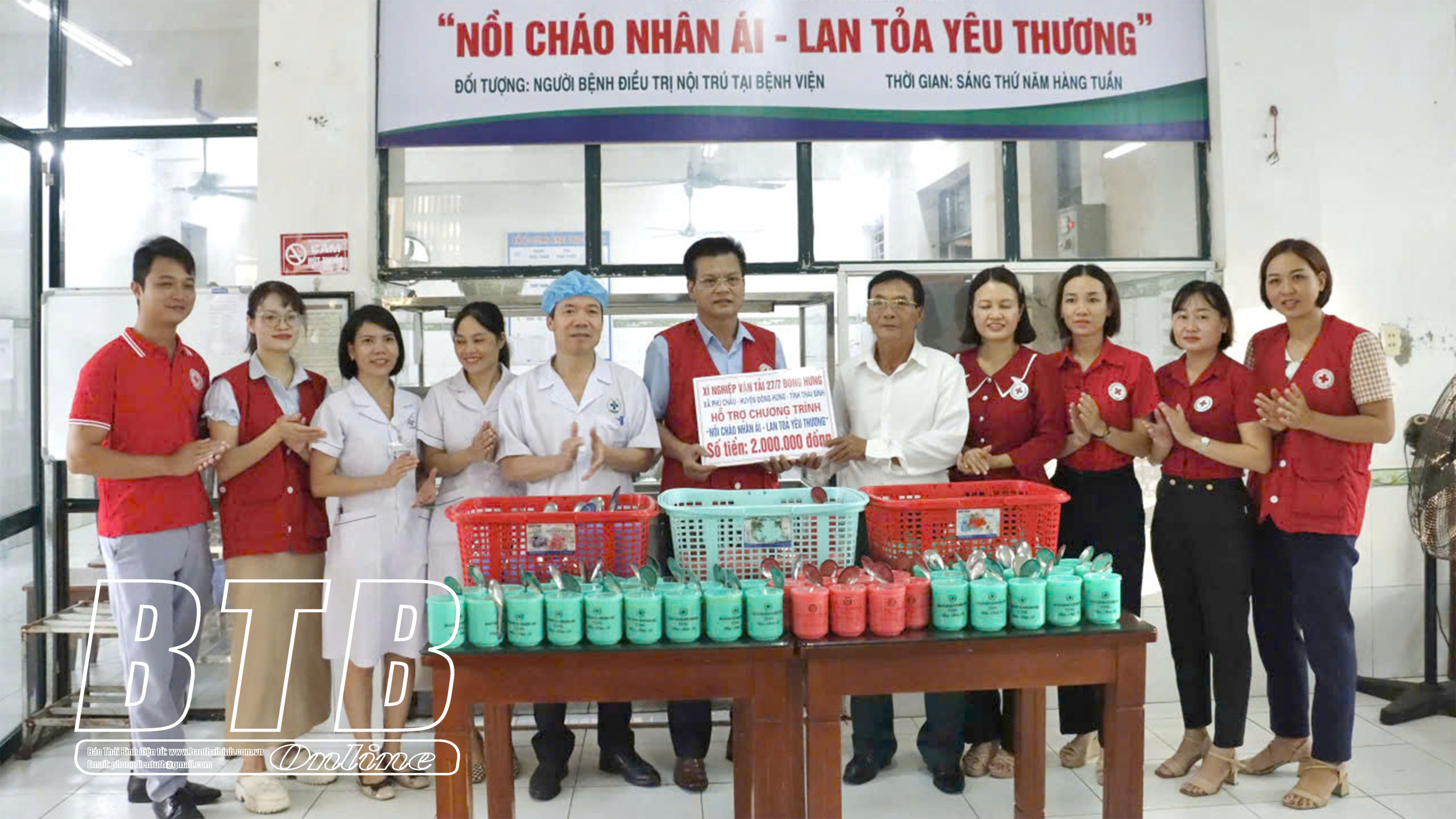 Hội Chữ thập đỏ huyện và Bệnh viện Đa khoa huyện Đông Hưng phát trên 200 suất cháo cho các bệnh nhân đang điều trị nội trú tại Bệnh viện. "Nồi cháo nhân ái - lan tỏa yêu thương" được Hội Chữ thập đỏ huyện và Bệnh viện Đa khoa huyện Đông Hưng duy trì vào sáng thứ 5 hàng tuần từ nay đến hết năm 2024. Đây là hoạt động có nghĩa nhân văn sâu sắc, không chỉ làm ấm lòng người bệnh mà còn gửi gắm sự yêu thương, chia sẻ của cộng đồng.