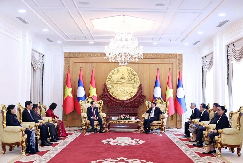 Chủ tịch Quốc hội Trần Thanh Mẫn hội kiến Tổng Bí thư, Chủ tịch nước Lào Thongloun Sisoulith. (Ảnh: Thống Nhất/TTXVN).