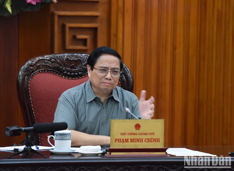 Thủ tướng Phạm Minh Chính phát biểu ý kiến chỉ đạo tại cuộc họp (Ảnh: Trần Hải).