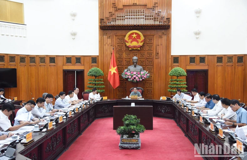 Thủ tướng Phạm Minh Chính chủ trì cuộc họp của Thường trực Chính phủ với các bộ, ngành, cơ quan, tập đoàn, doanh nghiệp liên quan về bảo đảm cung ứng điện. (Ảnh: Trần Hải).