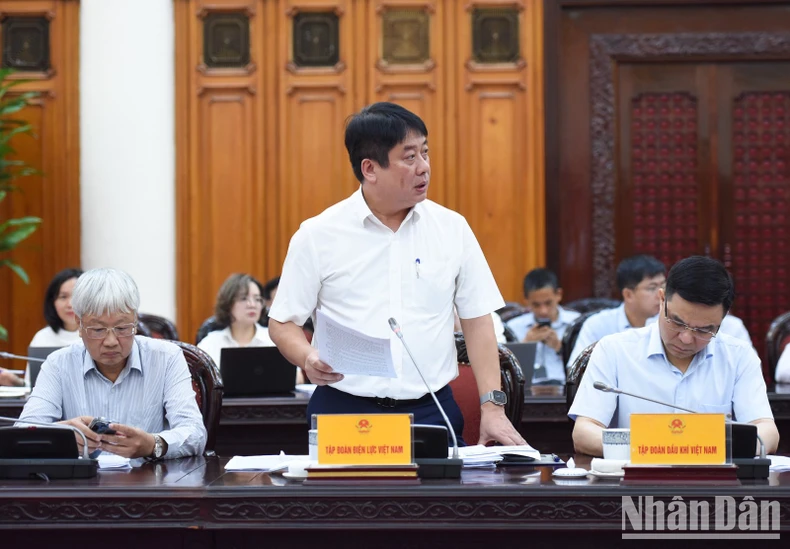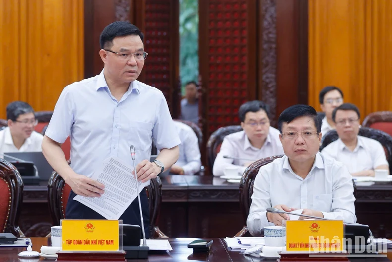 Chủ tịch Tập đoàn Dầu khí Quốc gia Việt Nam (PVN) Lê Mạnh Hùng báo cáo tại cuộc họp (Ảnh: Trần Hải).