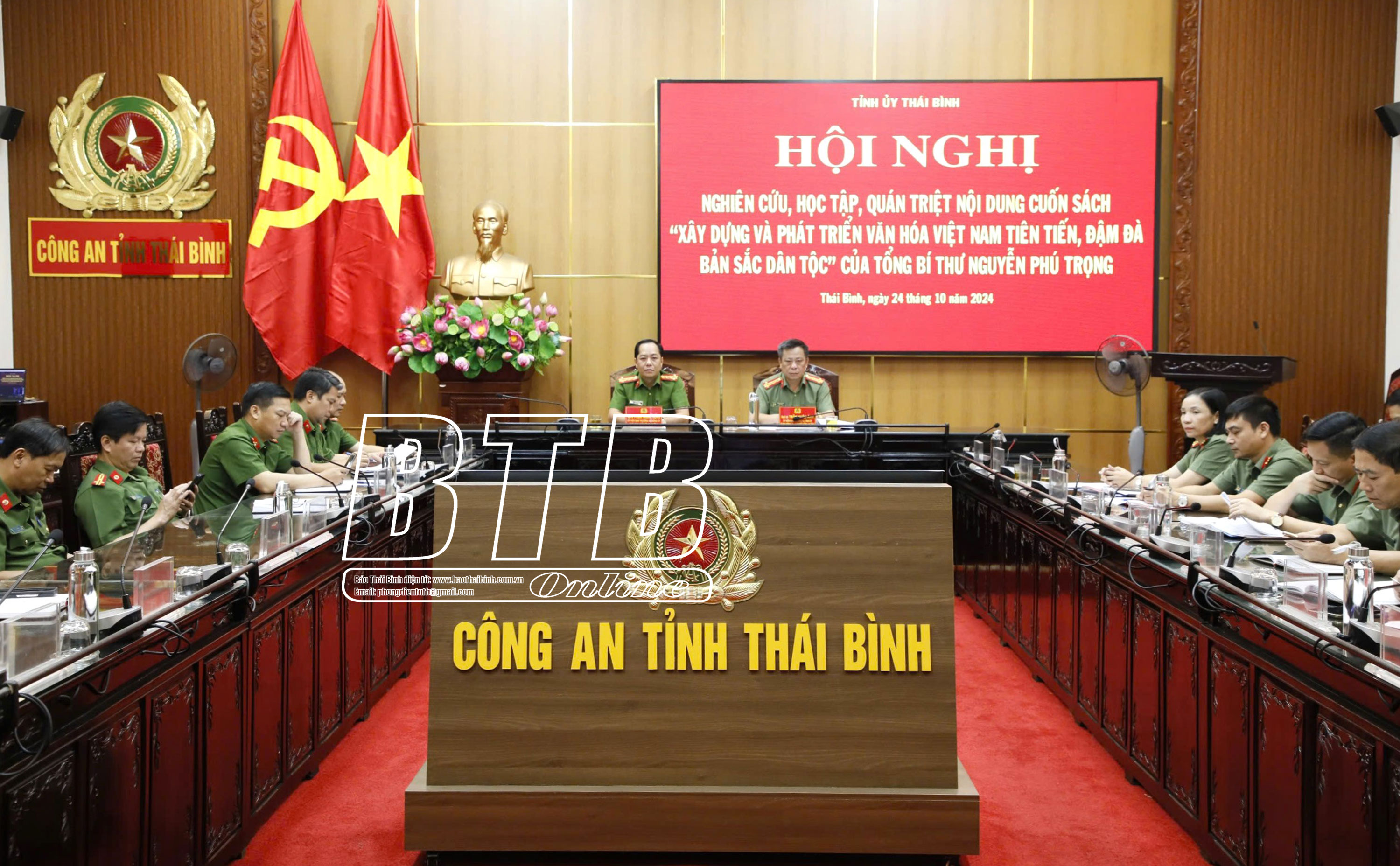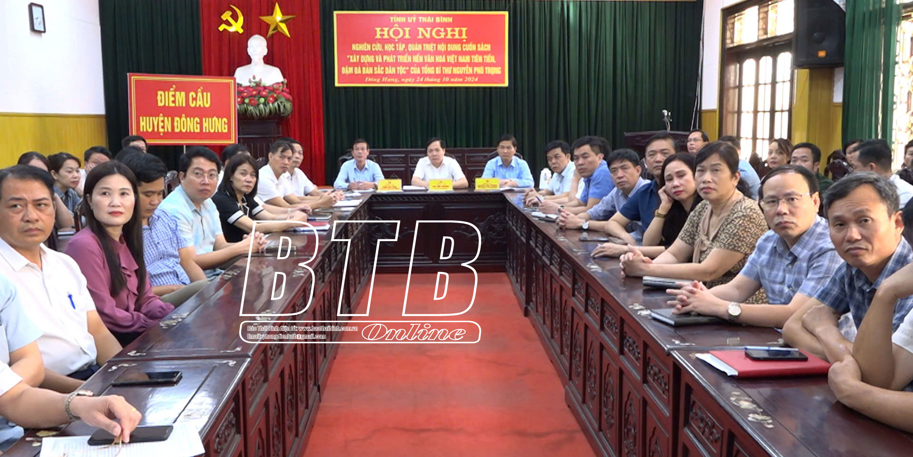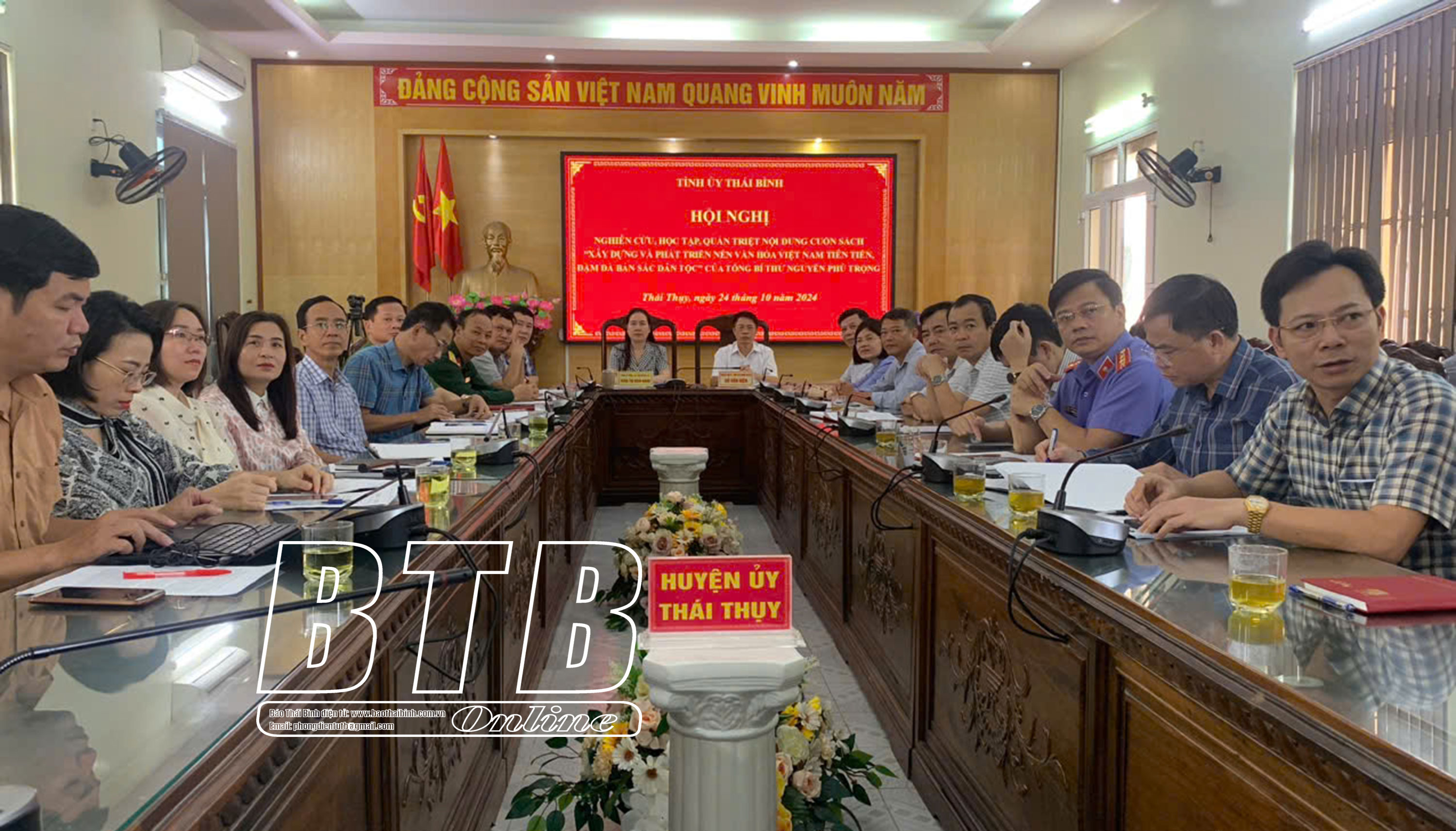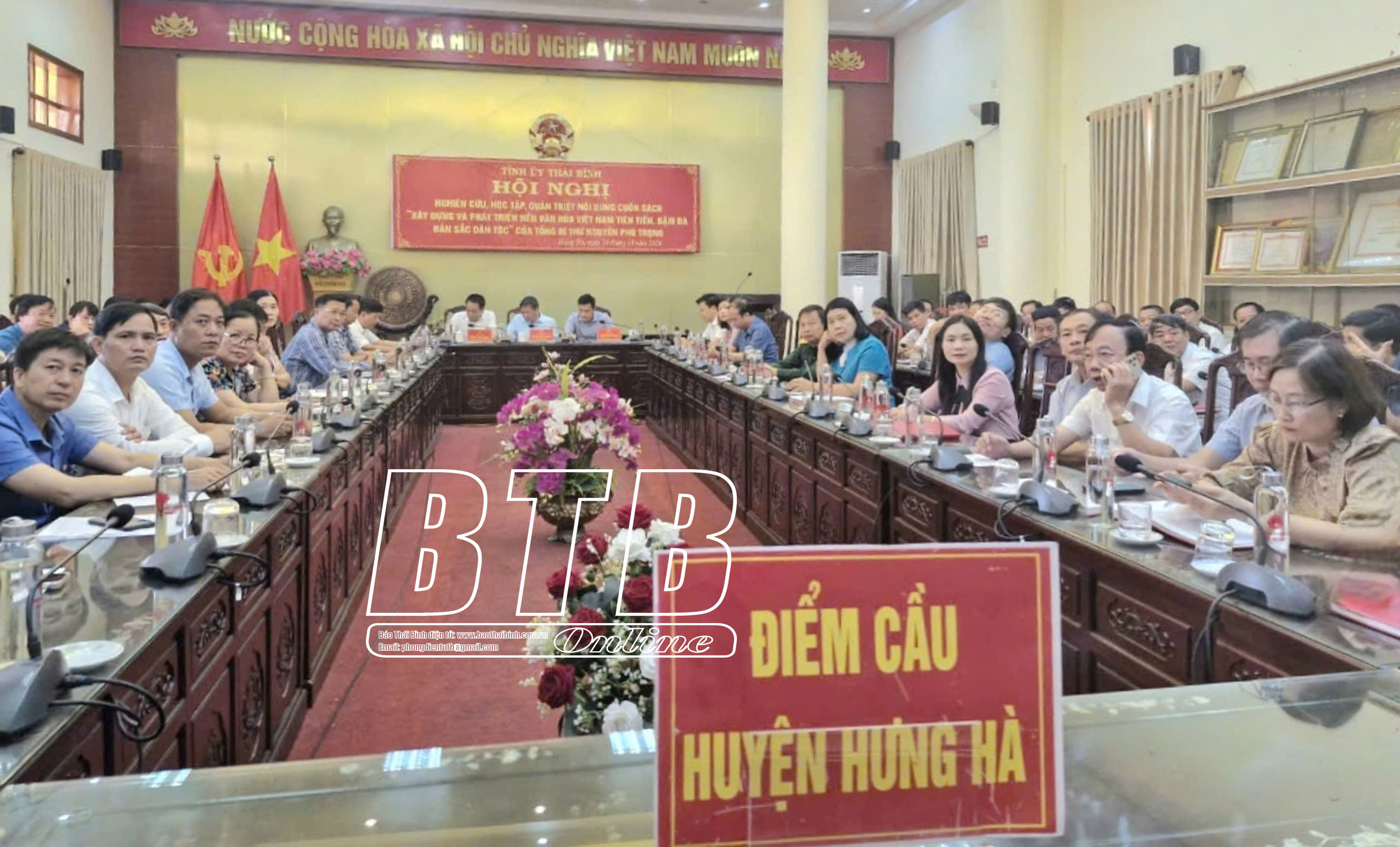 Đồng chí đề nghị các đại biểu tham dự hội nghị tại các điểm cầu nêu cao tinh thần trách nhiệm, nghiêm túc theo dõi, nắm bắt, tiếp thu các nội dung cuốn sách. Sau hội nghị, đề nghị các huyện ủy, thành ủy, đảng ủy trực thuộc Tỉnh ủy khẩn trương chỉ đạo, tổ chức nghiên cứu, học tập cuốn sách đến toàn thể cán bộ, đảng viên và các tổ chức cơ quan, đơn vị chưa tham gia học tập tại hội nghị trực tuyến; đồng thời đẩy mạnh tuyên truyền, phổ biến đến toàn thể cán bộ, đảng viên và các tầng lớp nhân dân với các hình thức phù hợp. Các cấp, các ngành chủ động liên hệ thực tiễn cơ quan, địa phương, đơn vị để cụ thể hóa các nội dung, tư tưởng của Tổng Bí thư Nguyễn Phú Trọng về xây dựng và phát triển nền văn hóa Việt Nam thành kế hoạch, chương trình hành động cụ thể để triển khai thực hiện gắn với thực hiện Nghị quyết số 04-NQ/TU của Ban Chấp hành Đảng bộ tỉnh (khóa XIX) về tăng cường giáo dục, phát huy truyền thống văn hóa, văn hiến, yêu nước, cách mạng của quê hương Thái Bình cho cán bộ, đảng viên và các tầng lớp nhân dân. Tổ chức các đợt sinh hoạt chính trị sâu rộng về nội dung cuốn sách tới cán bộ, đảng viên và các tầng lớp nhân dân nhằm tạo sự thống nhất trong Đảng, sự đồng thuận trong xã hội và các tầng lớp nhân dân trong thực hiện các mục tiêu, nội dung, quan điểm, nhiệm vụ, giải pháp xây dựng và phát triển nền văn hóa Việt Nam tiên tiến, đậm đà bản sắc dân tộc mà Đảng, Nhà nước và Tổng Bí thư Nguyễn Phú Trọng đã xác định. Các cơ quan báo chí, tuyên truyền trên địa bàn tỉnh đẩy mạnh tuyên truyền nội dung cuốn sách để tất cả cán bộ, đảng viên, đặc biệt là các tầng lớp nhân dân đều có cơ hội tiếp cận, nghiên cứu và học tập nội dung cuốn sách của Tổng Bí thư Nguyễn Phú Trọng.