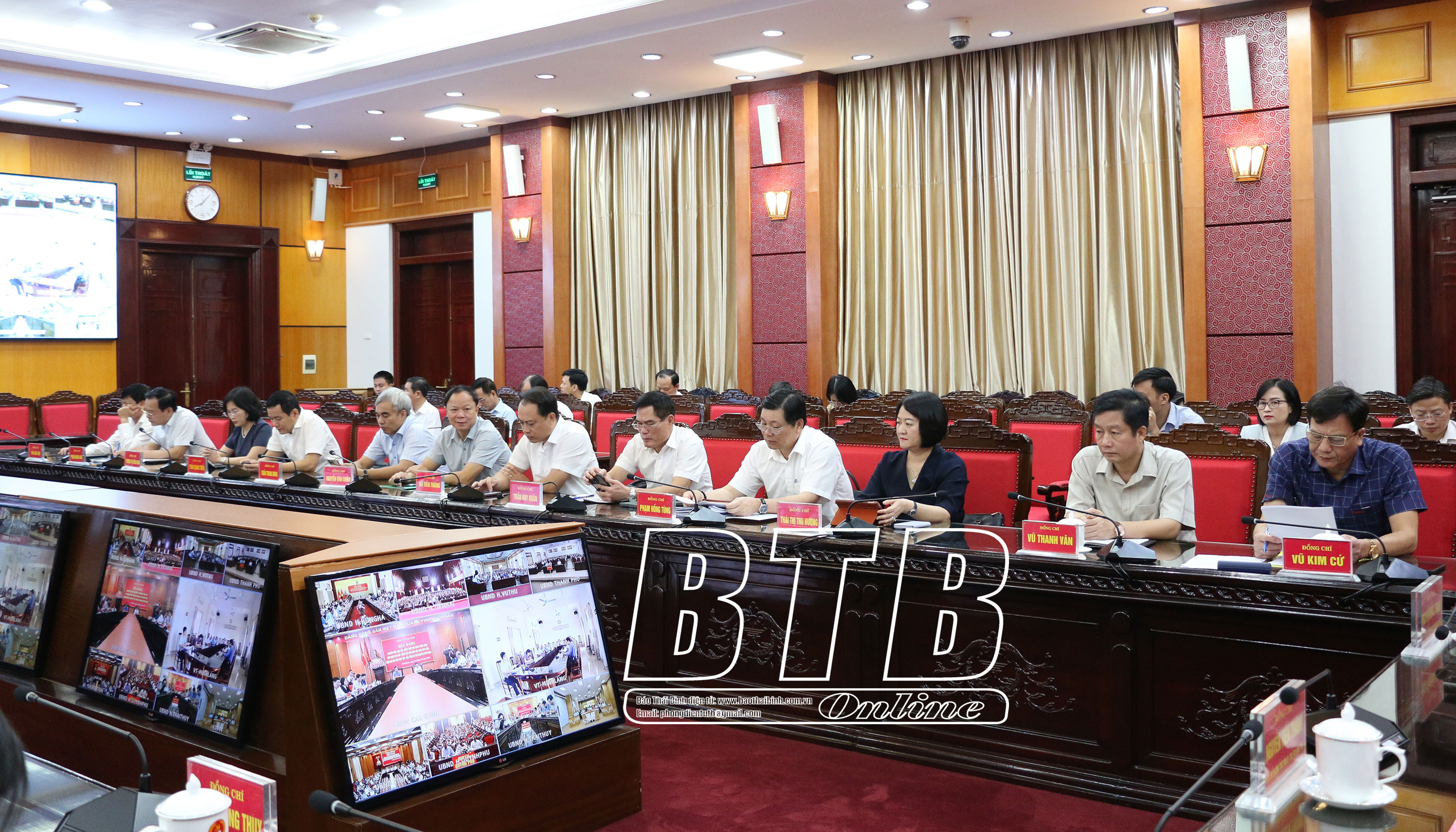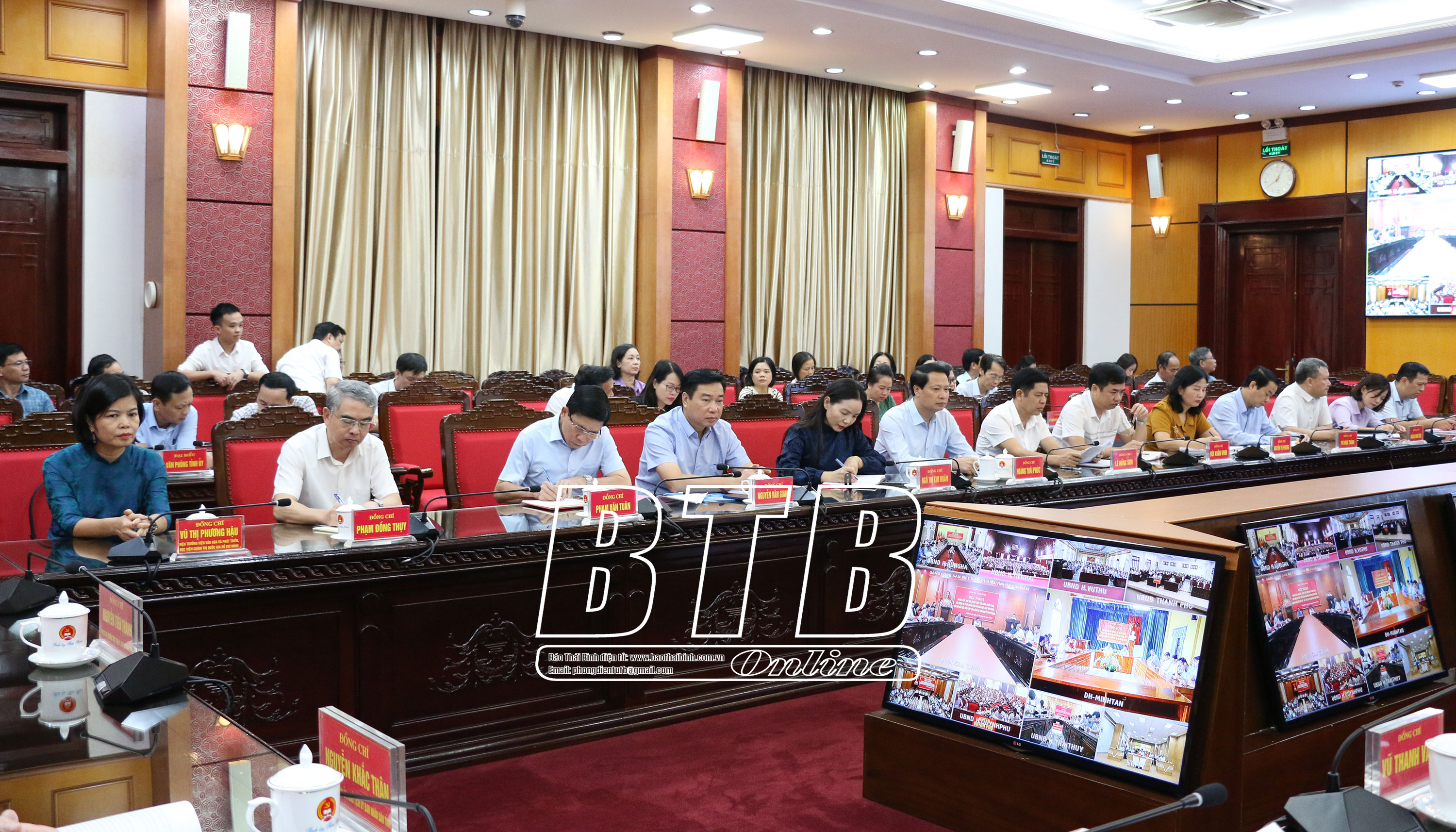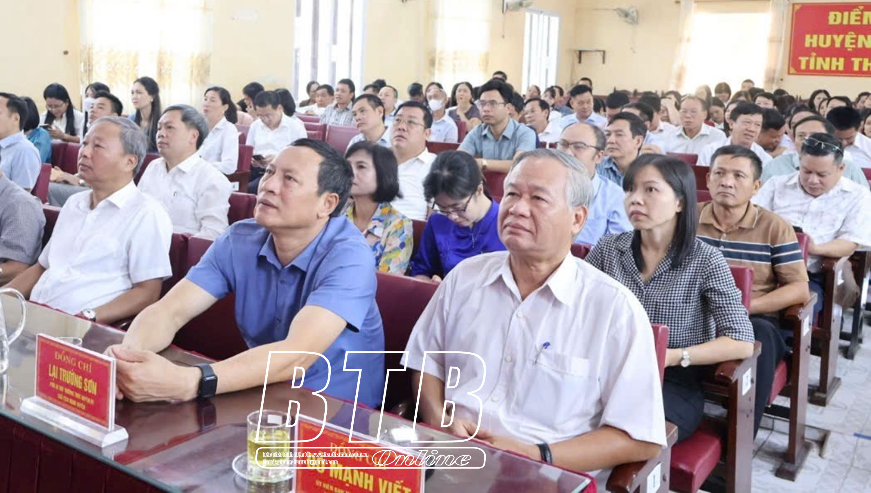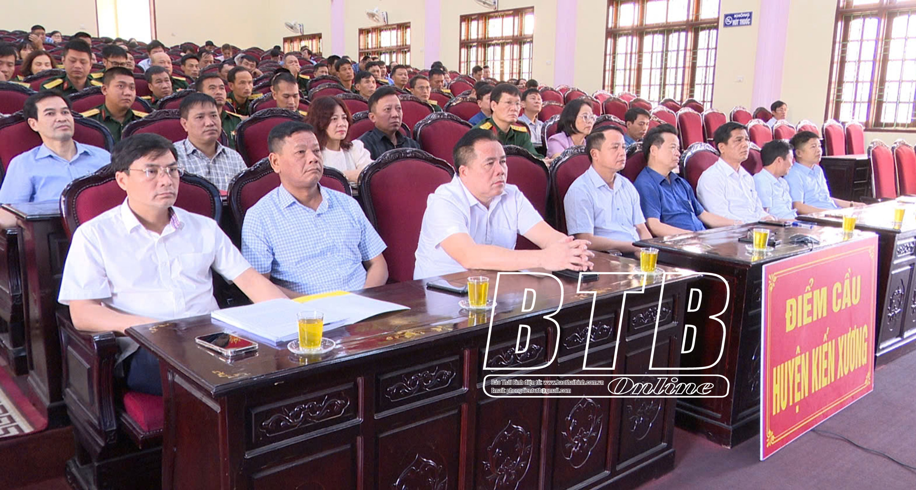 Các đại biểu dự hội nghị tại điểm cầu huyện Tiền Hải. Ảnh: Lê ChinhCác đại biểu dự hội nghị tại điểm cầu Công an tỉnh. Ảnh: Trịnh Cường  Cán bộ, chiến sĩ dự hội nghị tại điểm cầu Bộ Chỉ huy Quân sự tỉnh. Ảnh: Tiến Đạt