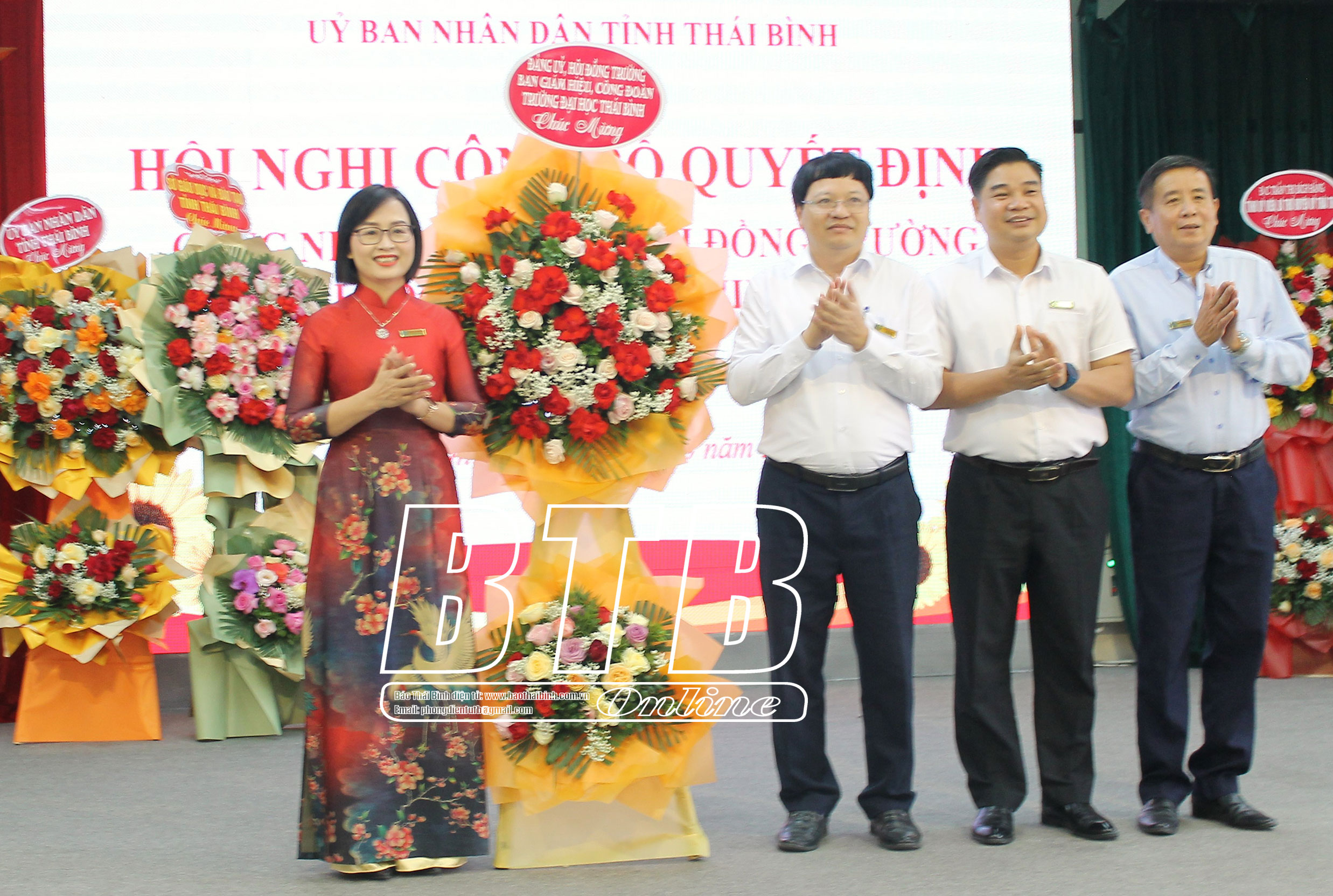 Hội nghị đã công bố Quyết định số 1733/QĐ-UBND của UBND tỉnh về việc công nhận Chủ tịch Hội đồng Trường Đại học Thái Bình nhiệm kỳ 2022 - 2027 đối với bà Phạm Thị Ánh Nguyệt, Phó Hiệu trưởng Trường Đại học Thái Bình.