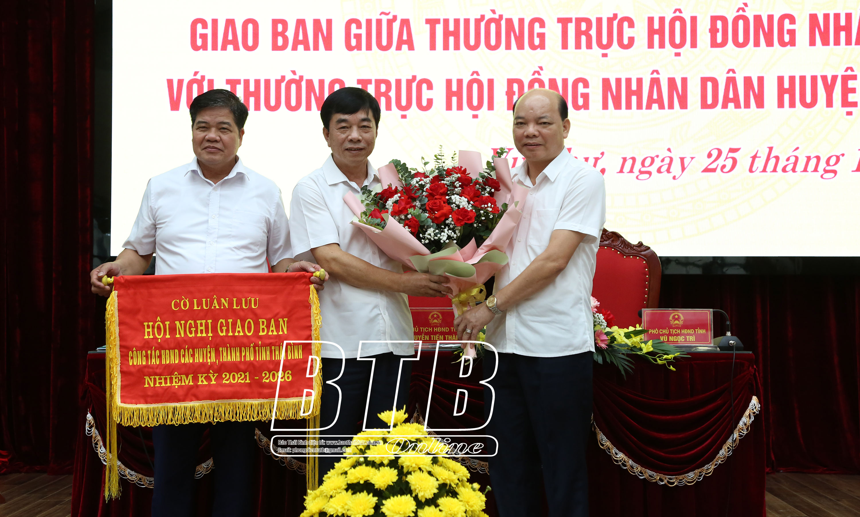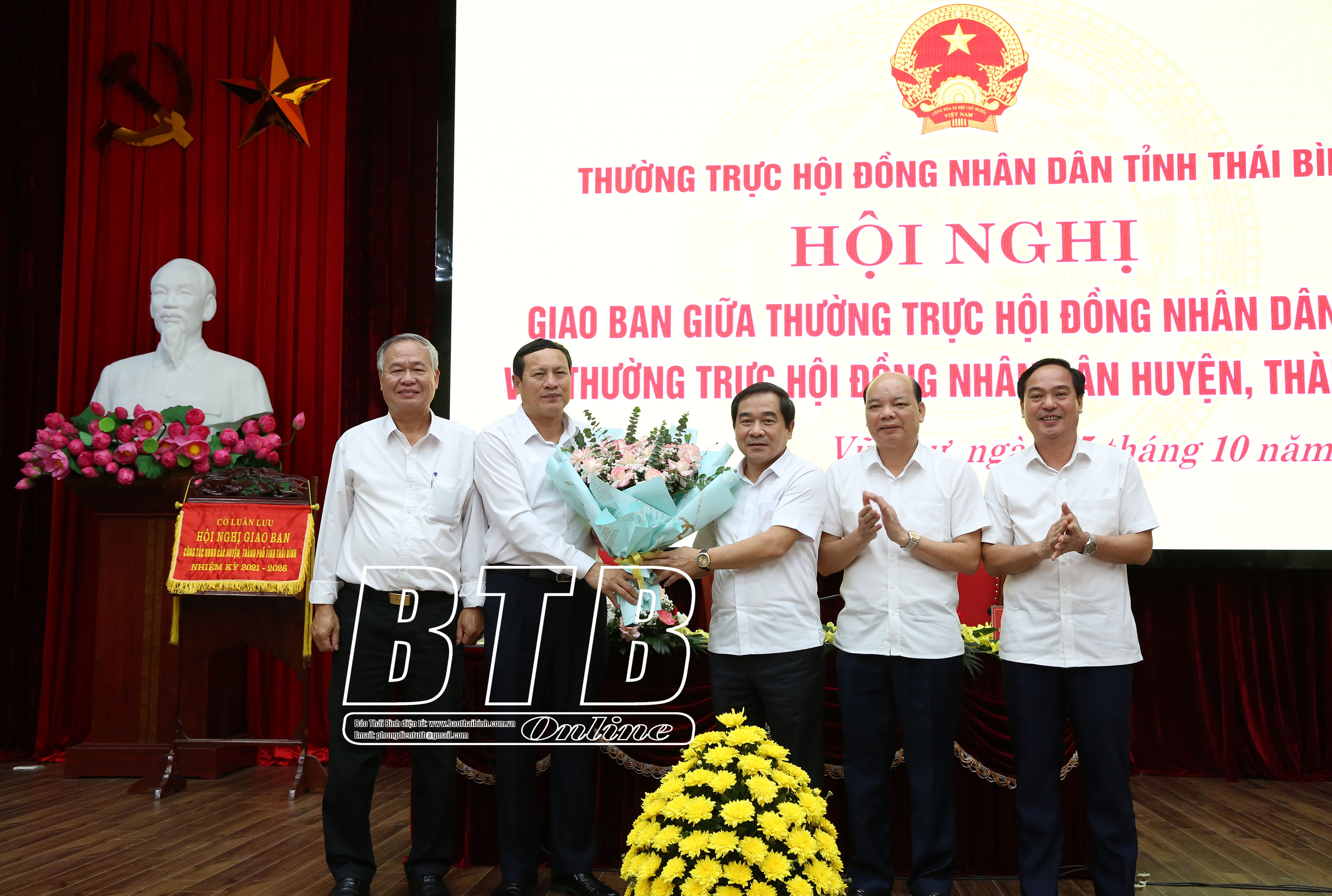 Tại hội nghị, các đồng chí lãnh đạo HĐND tỉnh tặng hoa chúc mừng Thường trực HĐND huyện Vũ Thư đã phối hợp tổ chức thành công hội nghị giao ban lần thứ sáu; trao cờ luân lưu tổ chức hội nghị giao ban lần thứ bẩy cho Thường trực HĐND huyện Tiền Hải.