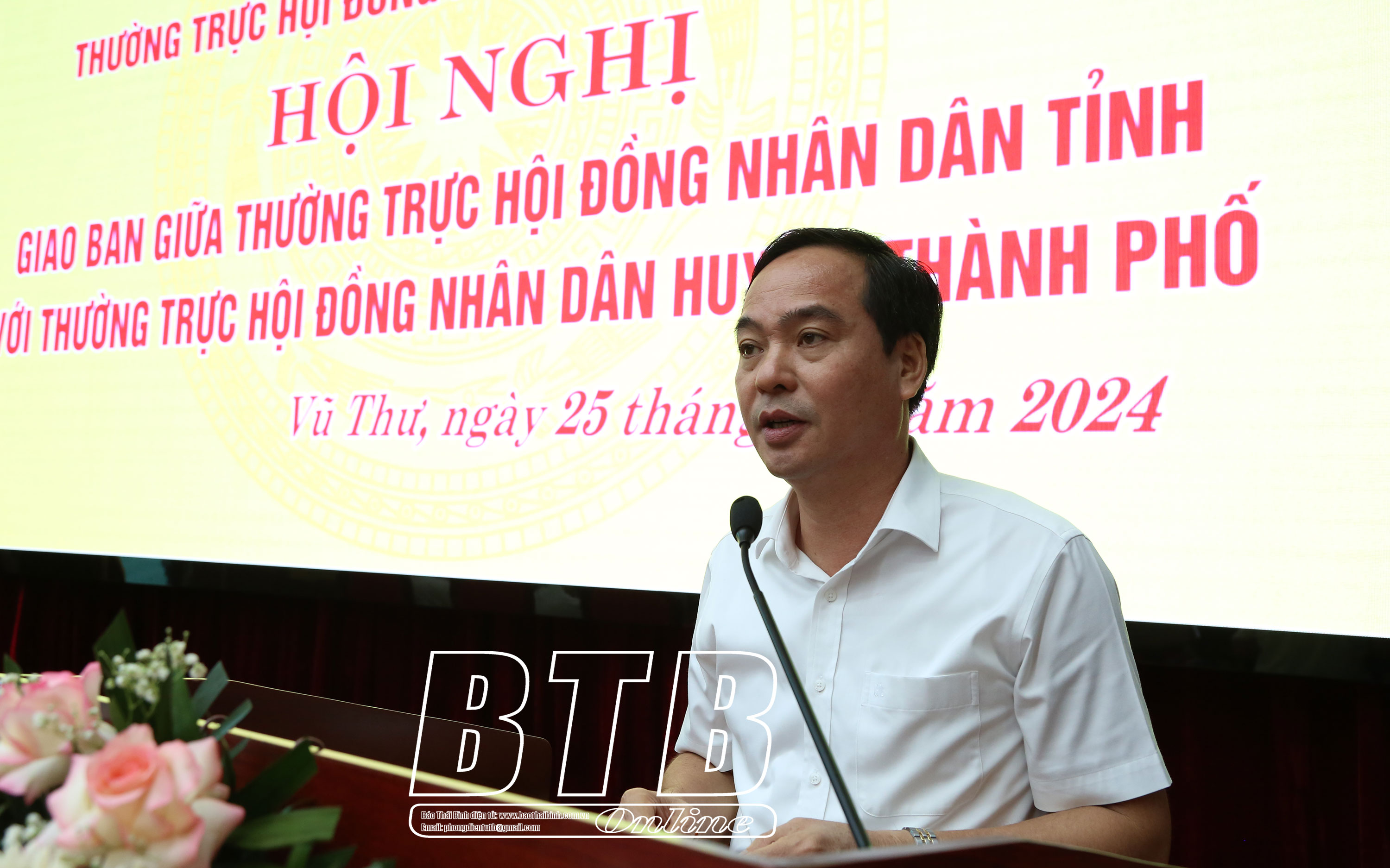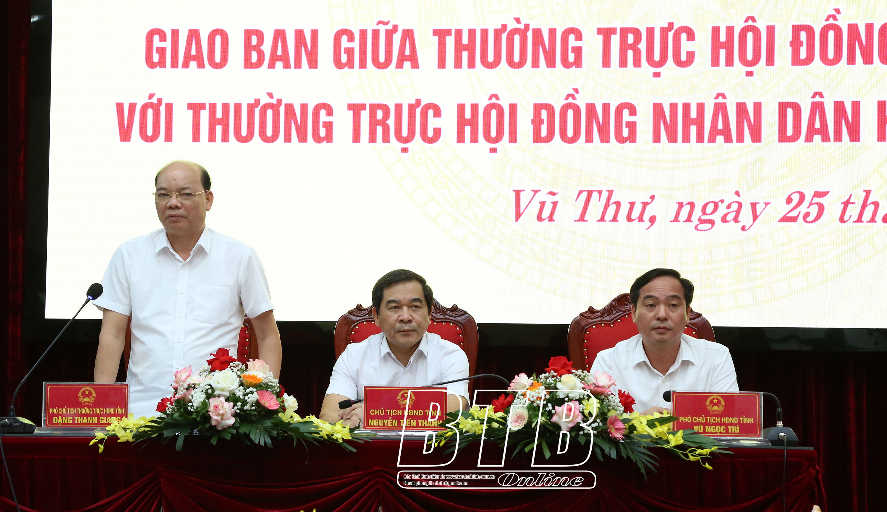 Các đồng chí: Nguyễn Tiến Thành, Phó Bí thư thường trực Tỉnh ủy, Chủ tịch HĐND tỉnh; Đặng Thanh Giang, Ủy viên Ban Thường vụ Tỉnh ủy, Phó Chủ tịch thường trực HĐND tỉnh; Vũ Ngọc Trì, Tỉnh ủy viên, Phó Chủ tịch HĐND tỉnh chủ trì hội nghị. Dự hội nghị có các đồng chí: Nguyễn Quang Hưng, Ủy viên Ban Thường vụ Tỉnh ủy, Phó Chủ tịch thường trực UBND tỉnh; Hoàng Văn Thành, Ủy viên Ban Thường vụ Tỉnh ủy, Bí thư Thành ủy, Chủ tịch HĐND thành phố.