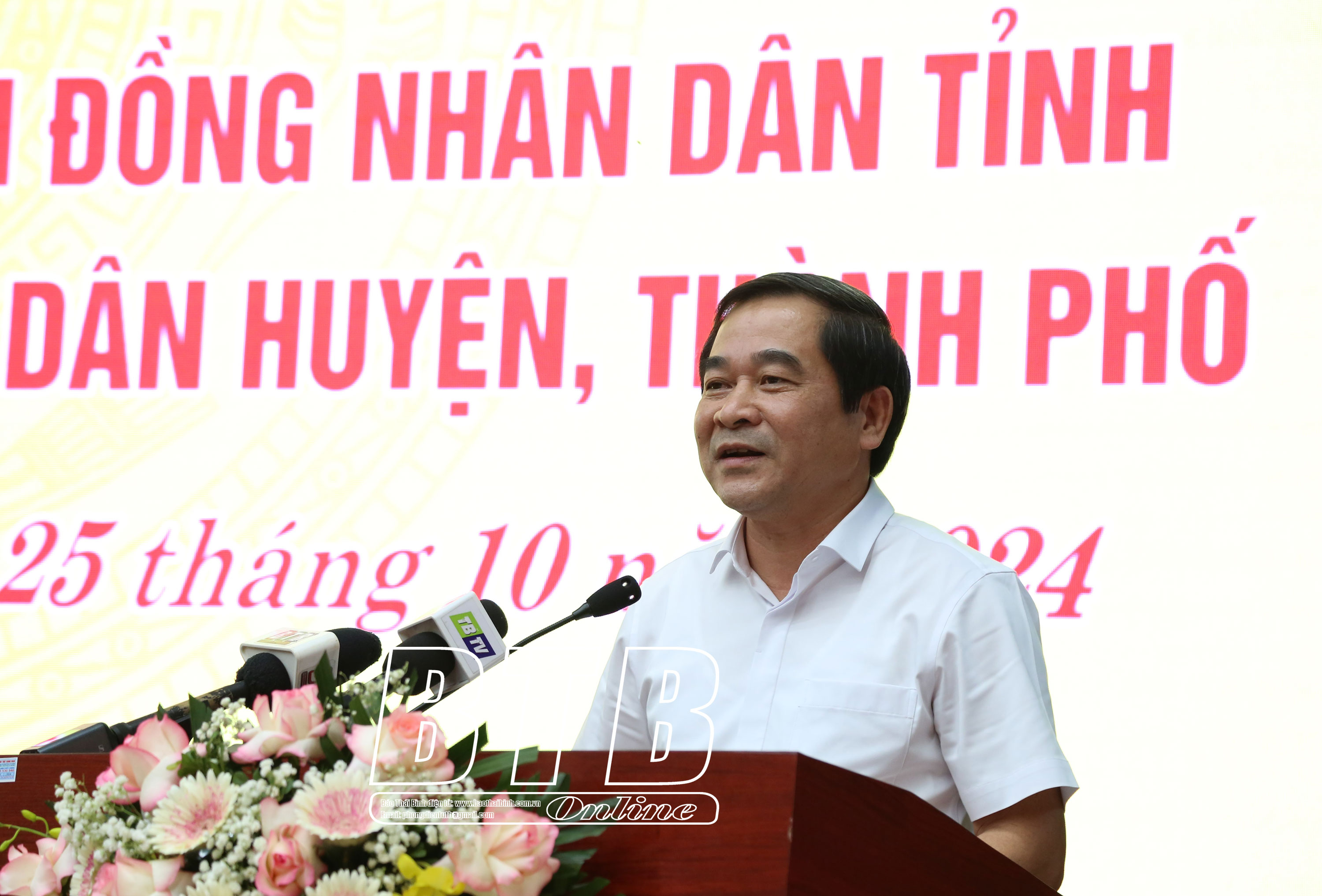 Phát biểu kết luận, đồng chí Nguyễn Tiến Thành, Phó Bí thư thường trực Tỉnh ủy, Chủ tịch HĐND tỉnh thông tin nhanh một số kết quả nổi bật trong phát triển kinh tế - xã hội của tỉnh 9 tháng đầu năm 2024, nhất là thu ngân sách, xúc tiến, thu hút đầu tư, phòng, chống bão, lũ…
