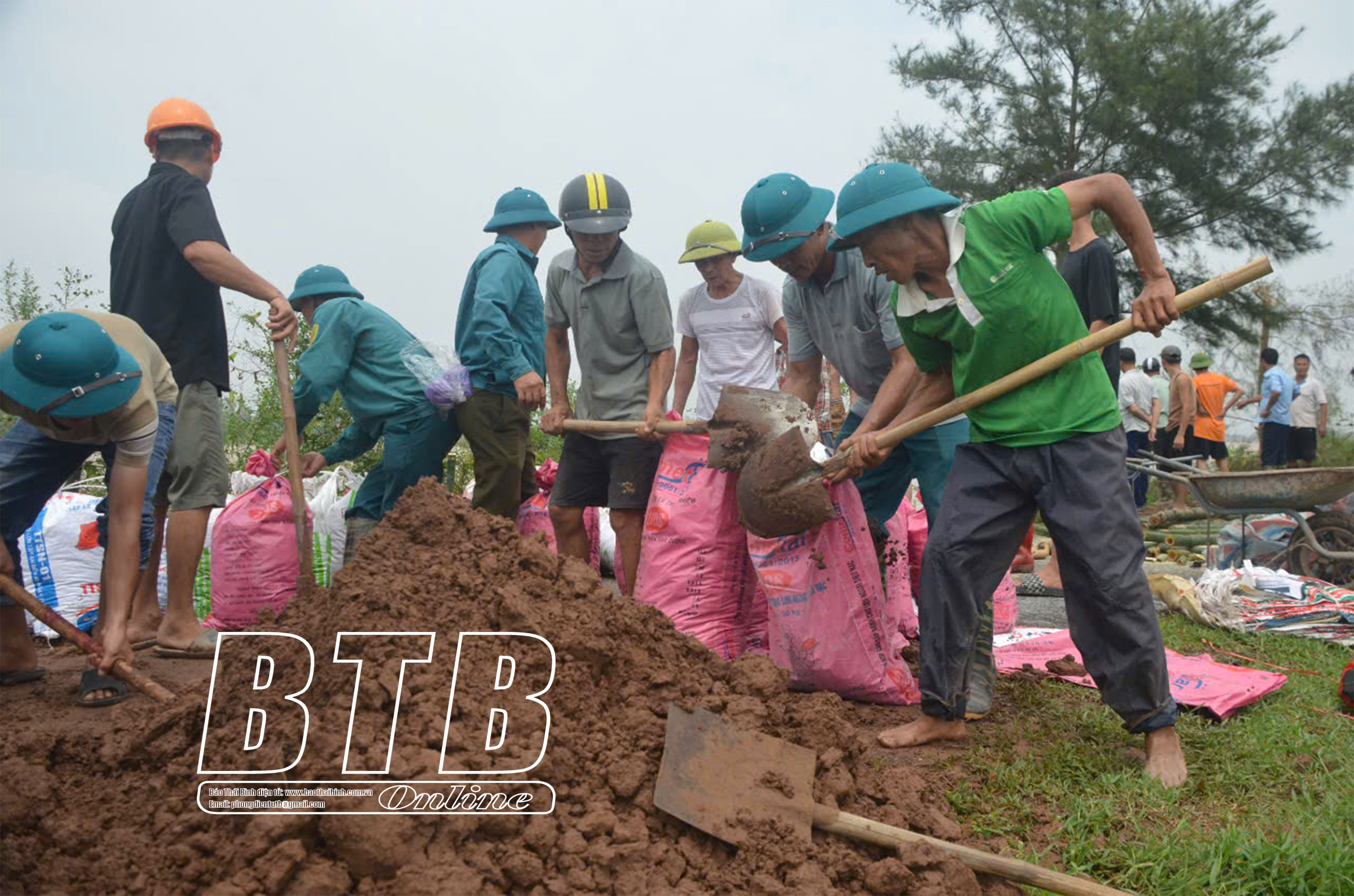 Người dân xã Quỳnh Lâm kiên phòng, chống bão lũ.