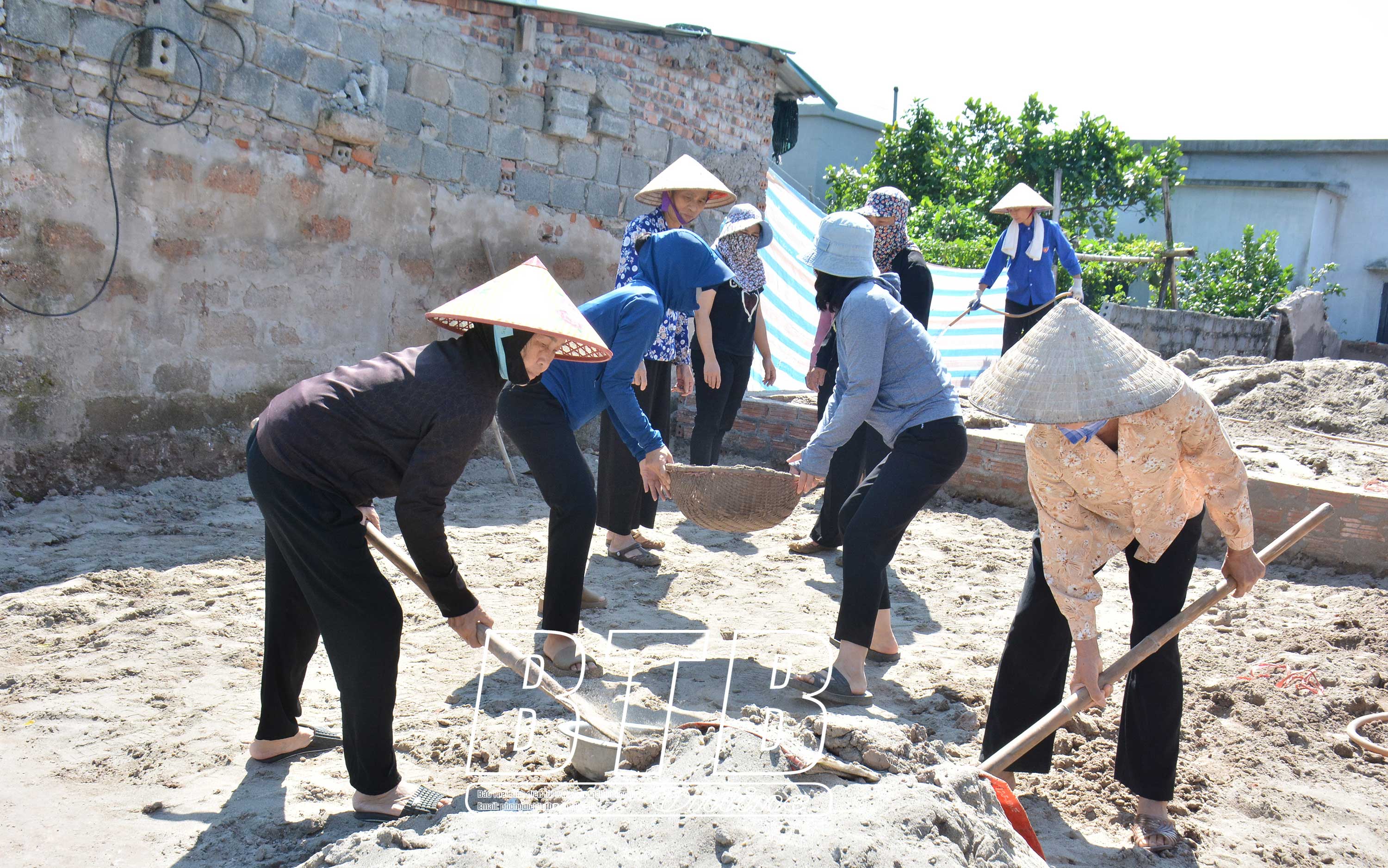 Cán bộ, hội viên phụ nữ xã Vũ Hòa (Kiến Xương) hỗ trợ ngày công giúp phụ nữ nghèo xây nhà mới.