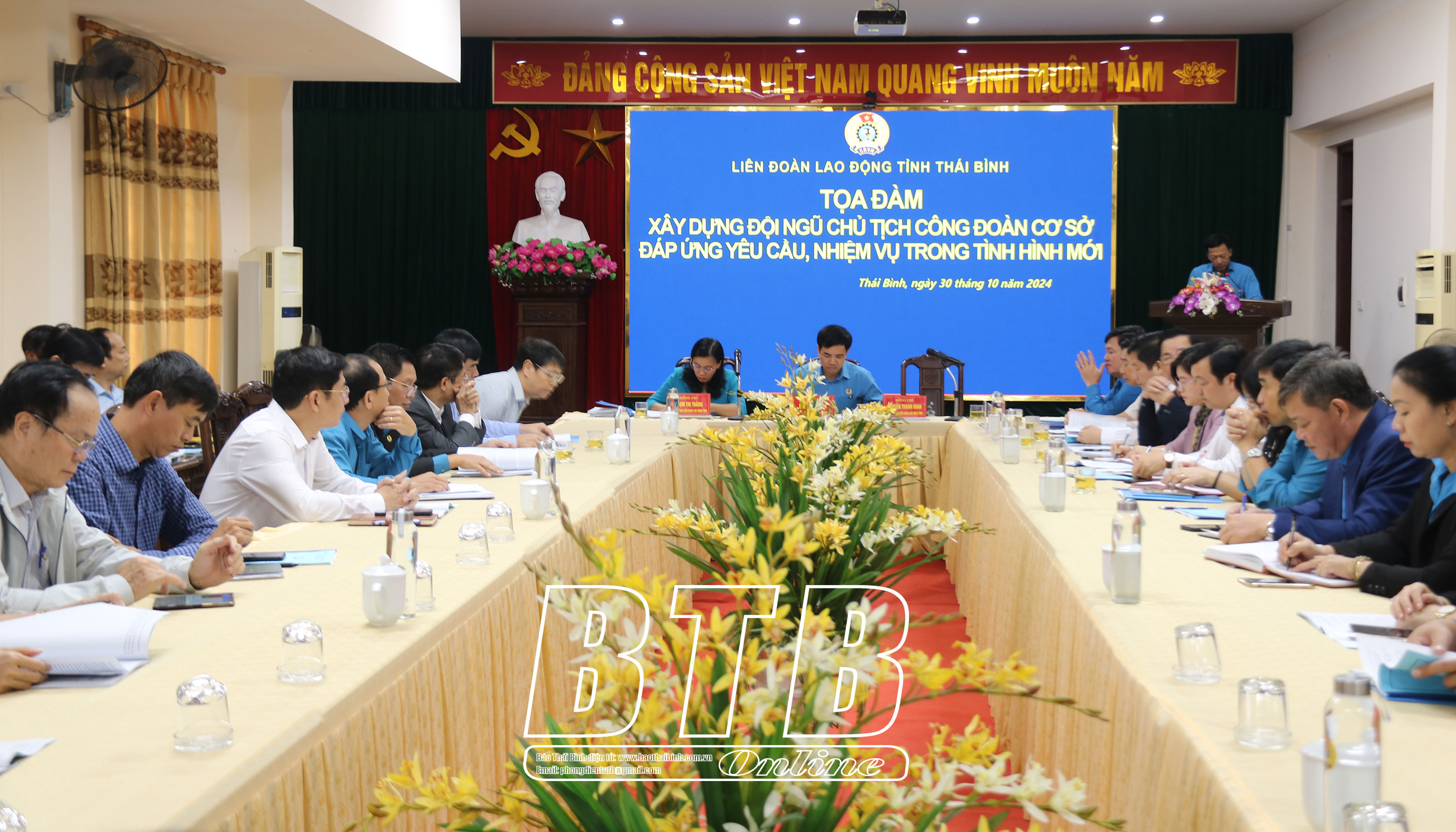Sáng ngày 30/10, Liên đoàn Lao động (LĐLĐ) tỉnh tổ chức tọa đàm “Xây dựng đội ngũ chủ tịch công đoàn cơ sở ngoài khu vực nhà nước đáp ứng yêu cầu, nhiệm vụ trong tình hình mới”. Các đồng chí: Nguyễn Xuân Hùng, Phó Chủ tịch Tổng LĐLĐ Việt Nam; Nguyễn Văn Giang, Ủy viên Ban Thường vụ, Trưởng ban Dân vận Tỉnh ủy; Vũ Thanh Vân, Ủy viên Ban Thường vụ Tỉnh ủy, Chủ tịch Ủy ban MTTQ tỉnh tới dự.