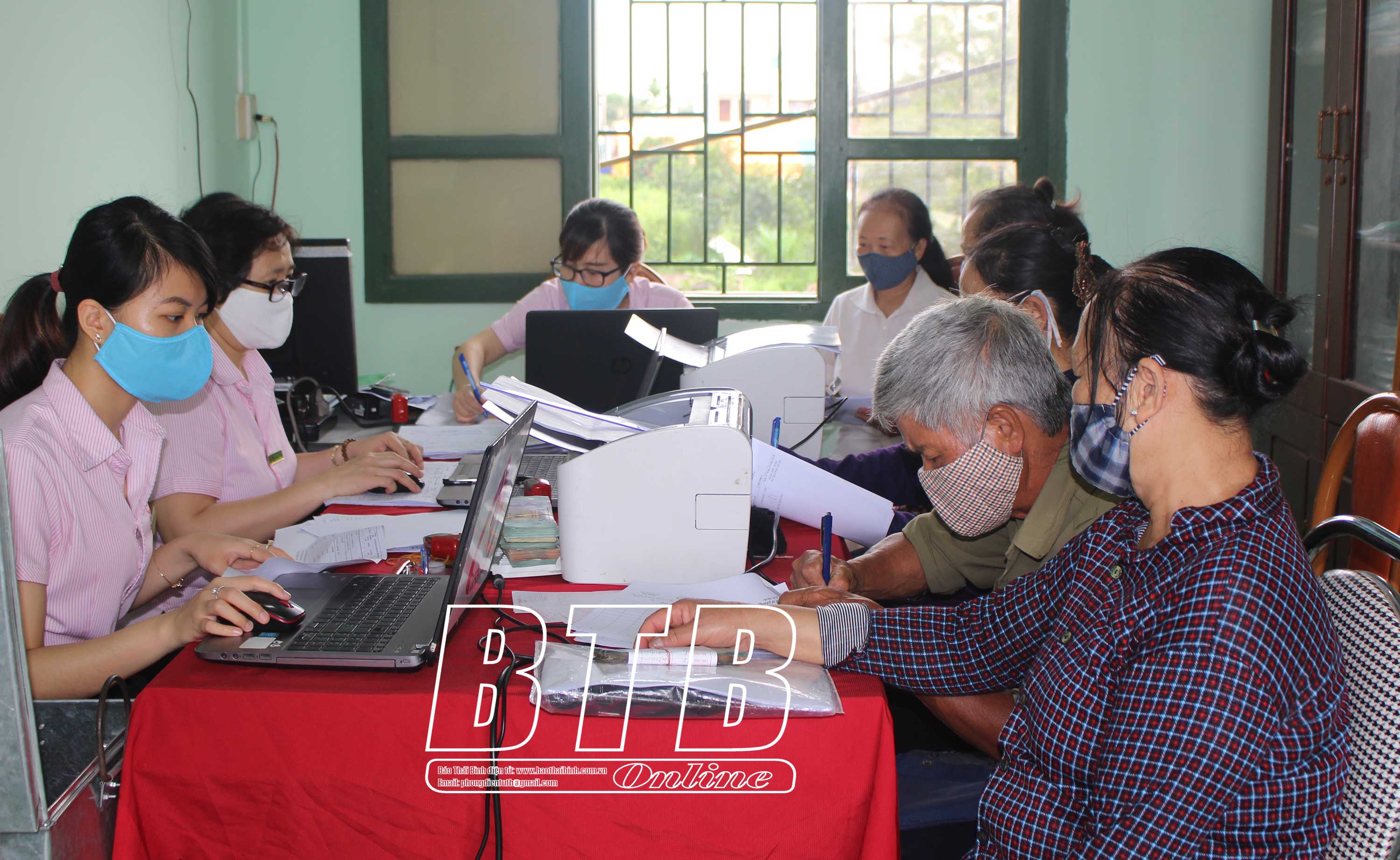Hoạt động giao dịch của Ngân hàng CSXH tại xã Đông Mỹ (thành phố Thái Bình).